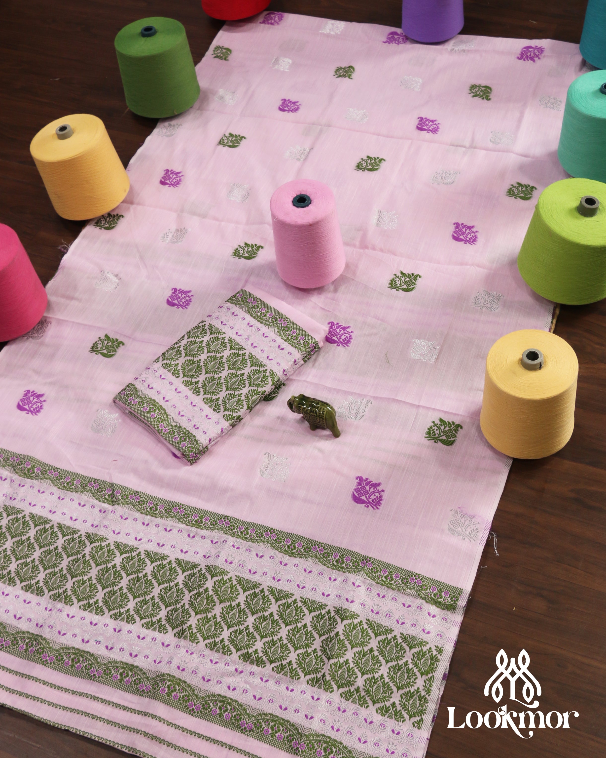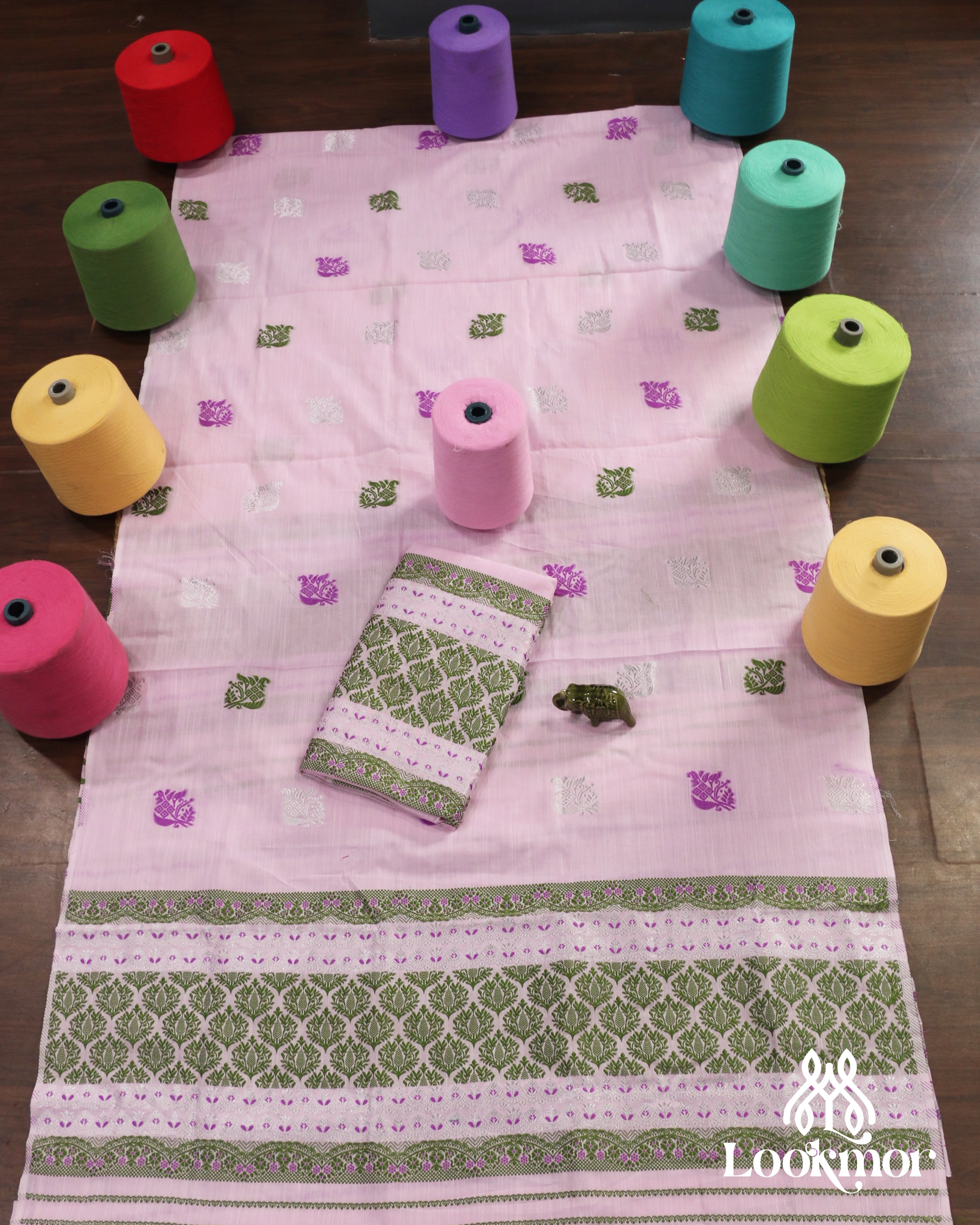 Premium Baby Pink Cotton Kesapaat Set Mekhela Sador with Jura