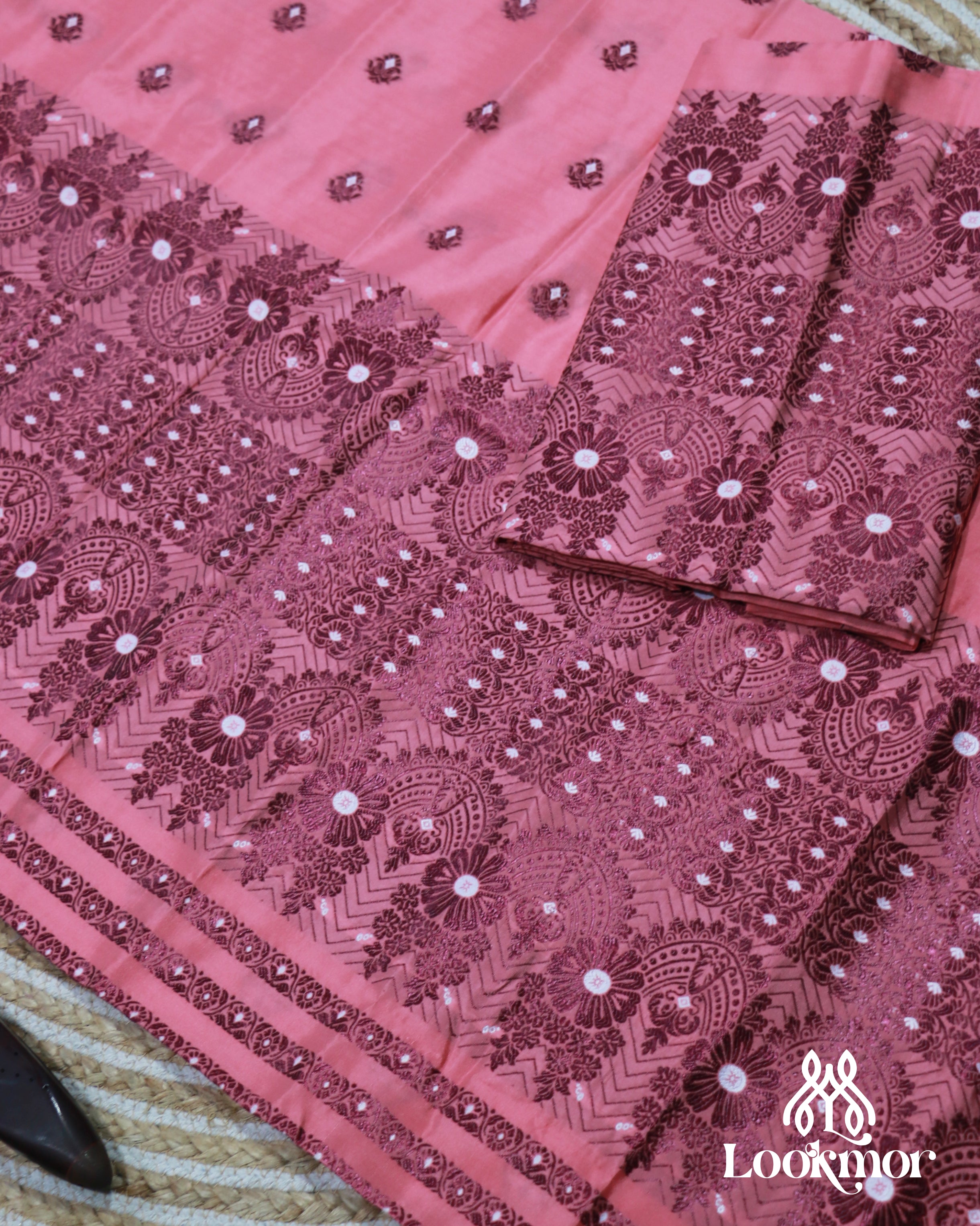 Graceful Pink Semi Pat Mekhela Sador with Feminine Flair