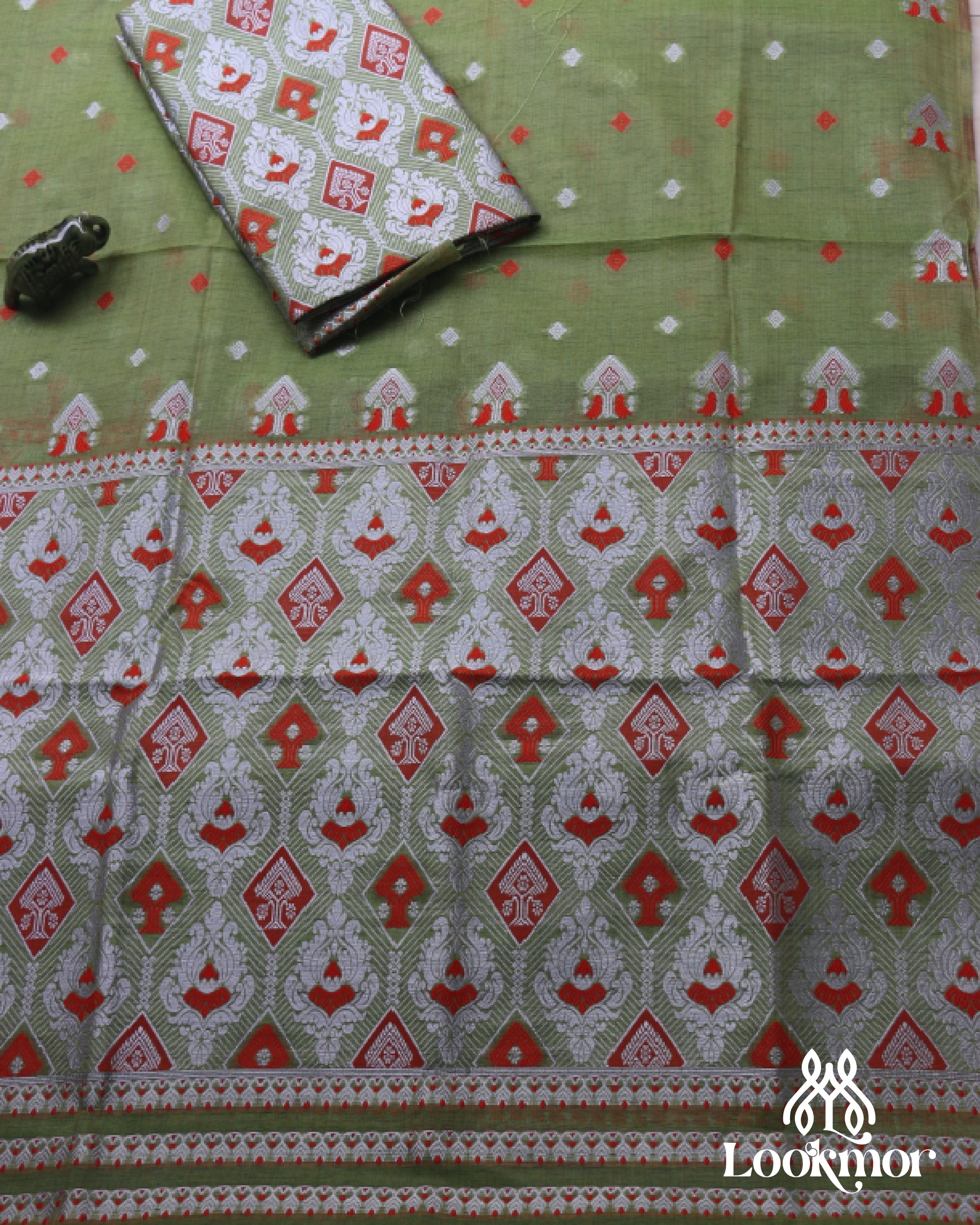 Chador with Un-stitched Lace: 2.75 Meters Machine-Weaving Unstitched Mekhla: 1.75 Meters Machine-Weaving Unstitched Blouse Piece: 0.75 Meters...