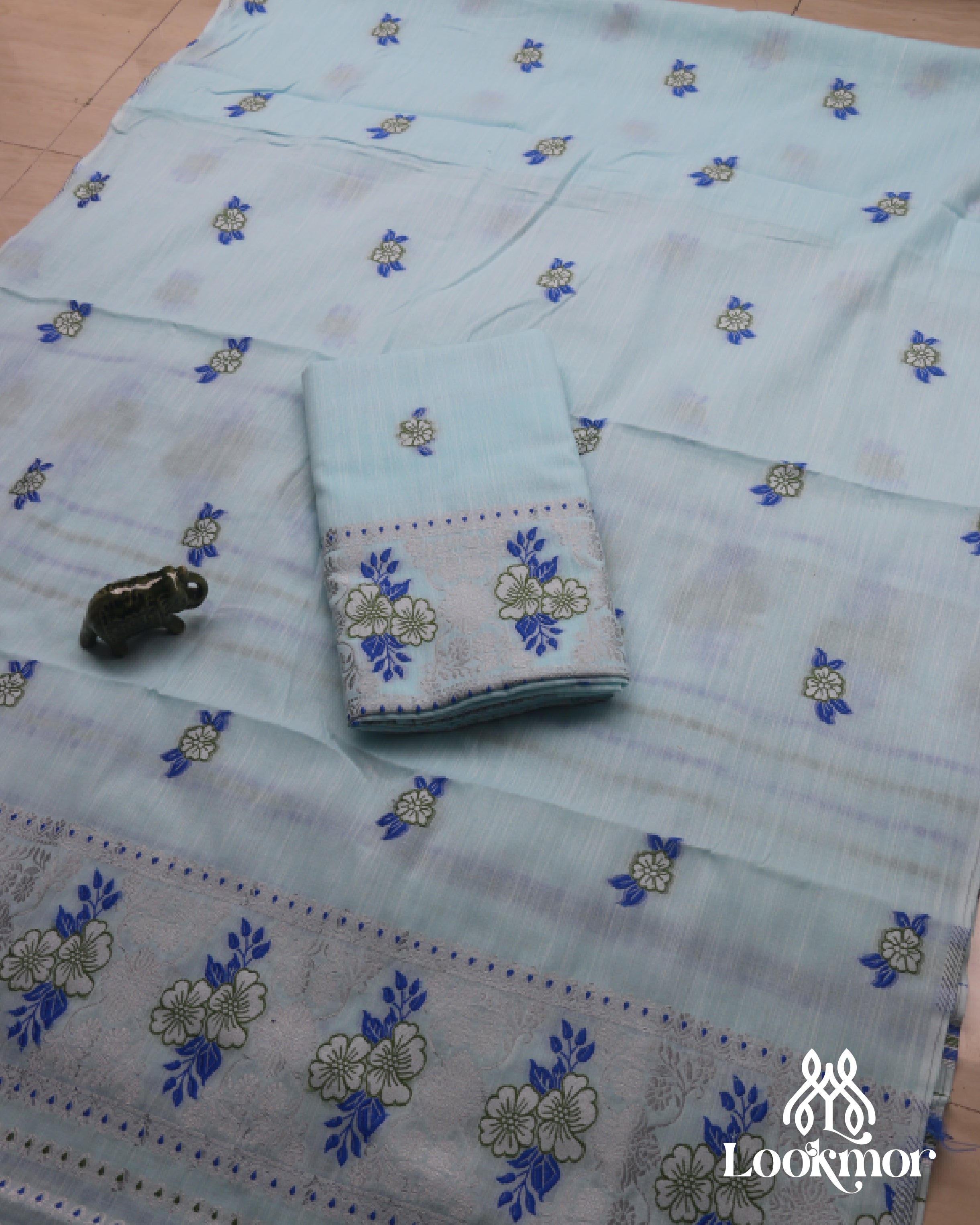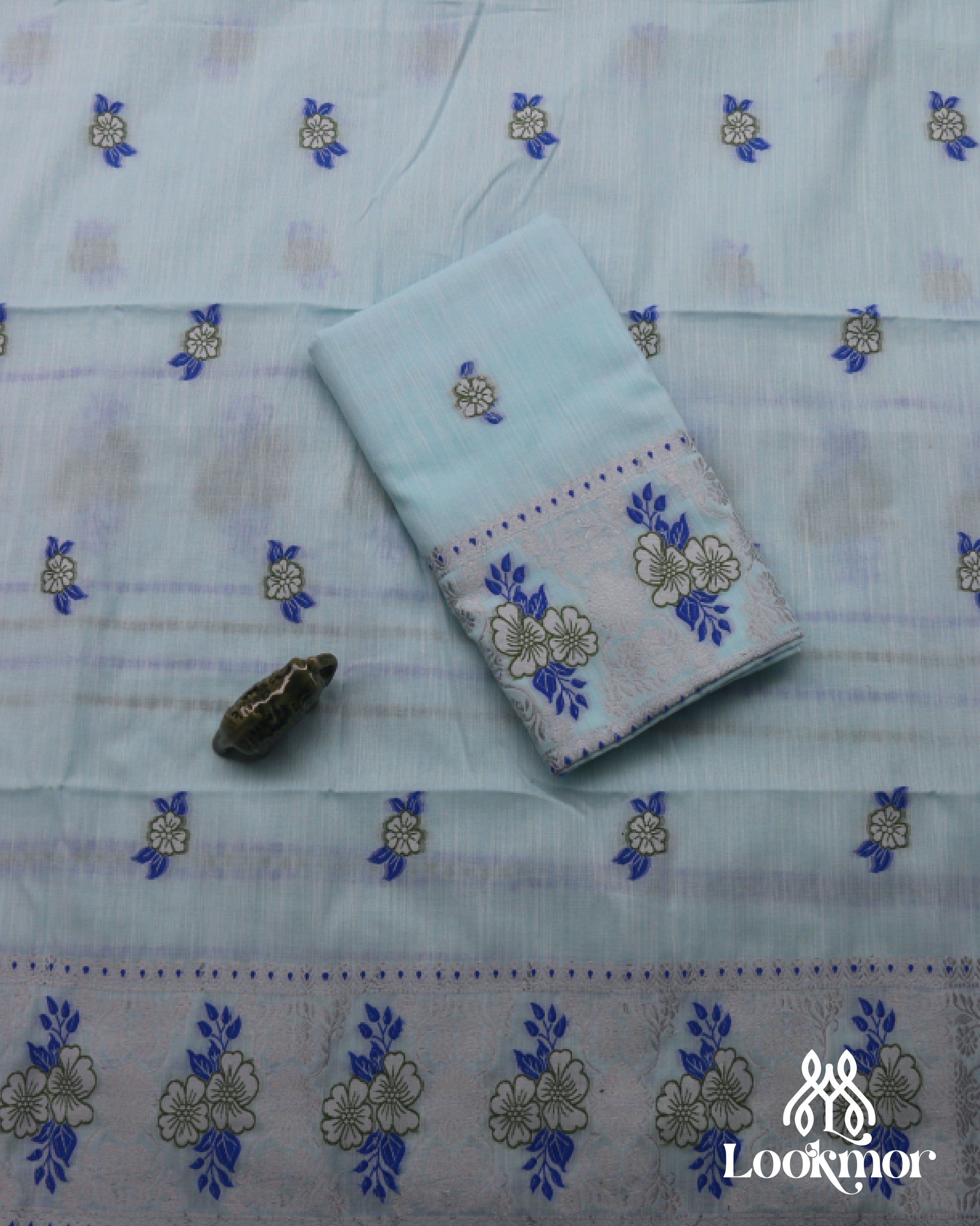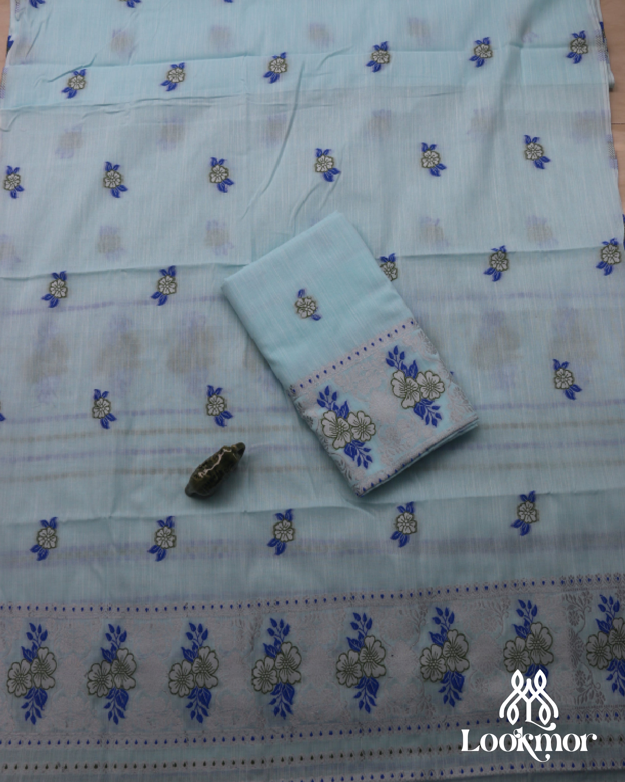 Light Blue Kesapaat Paat Set Mekhela Sador