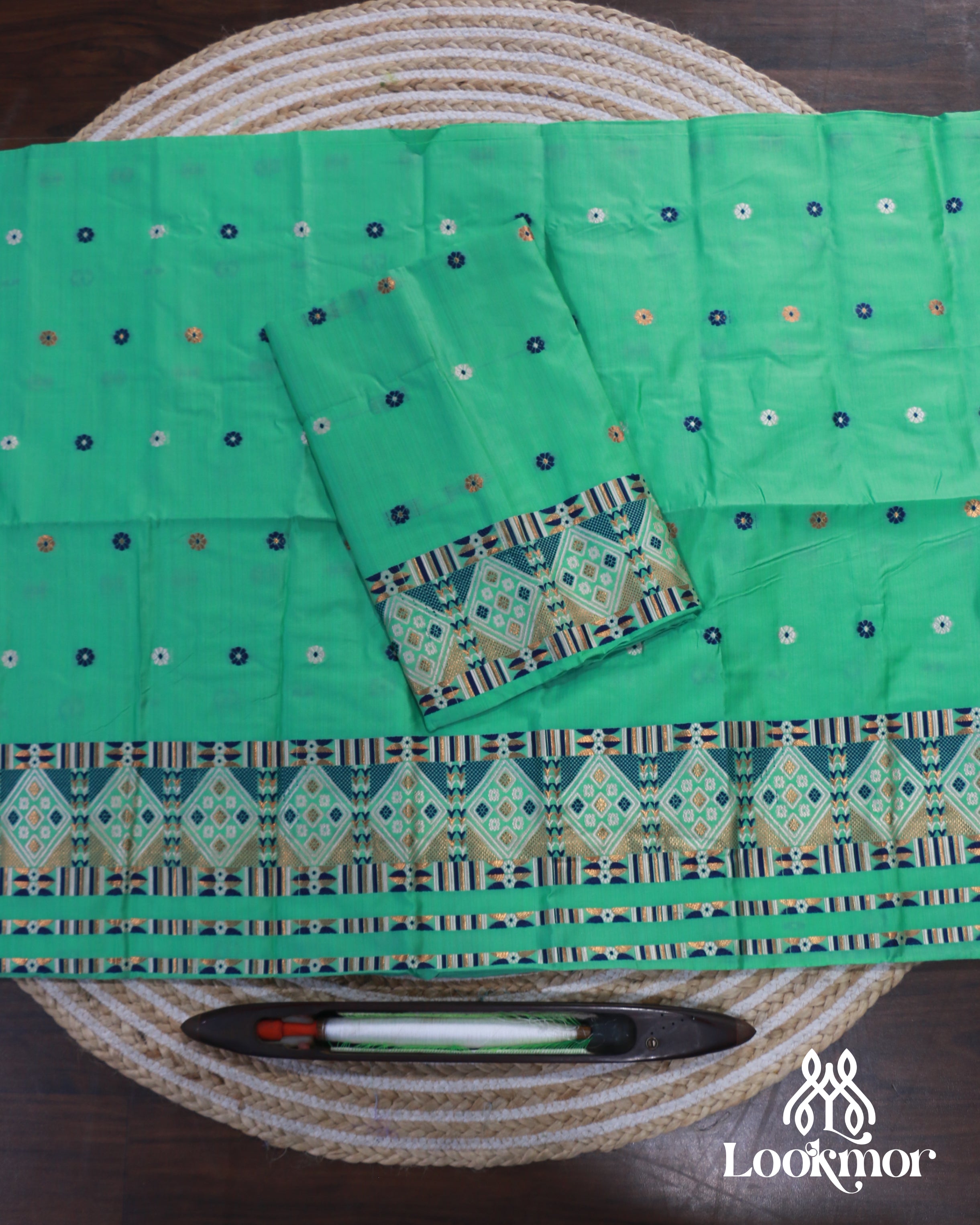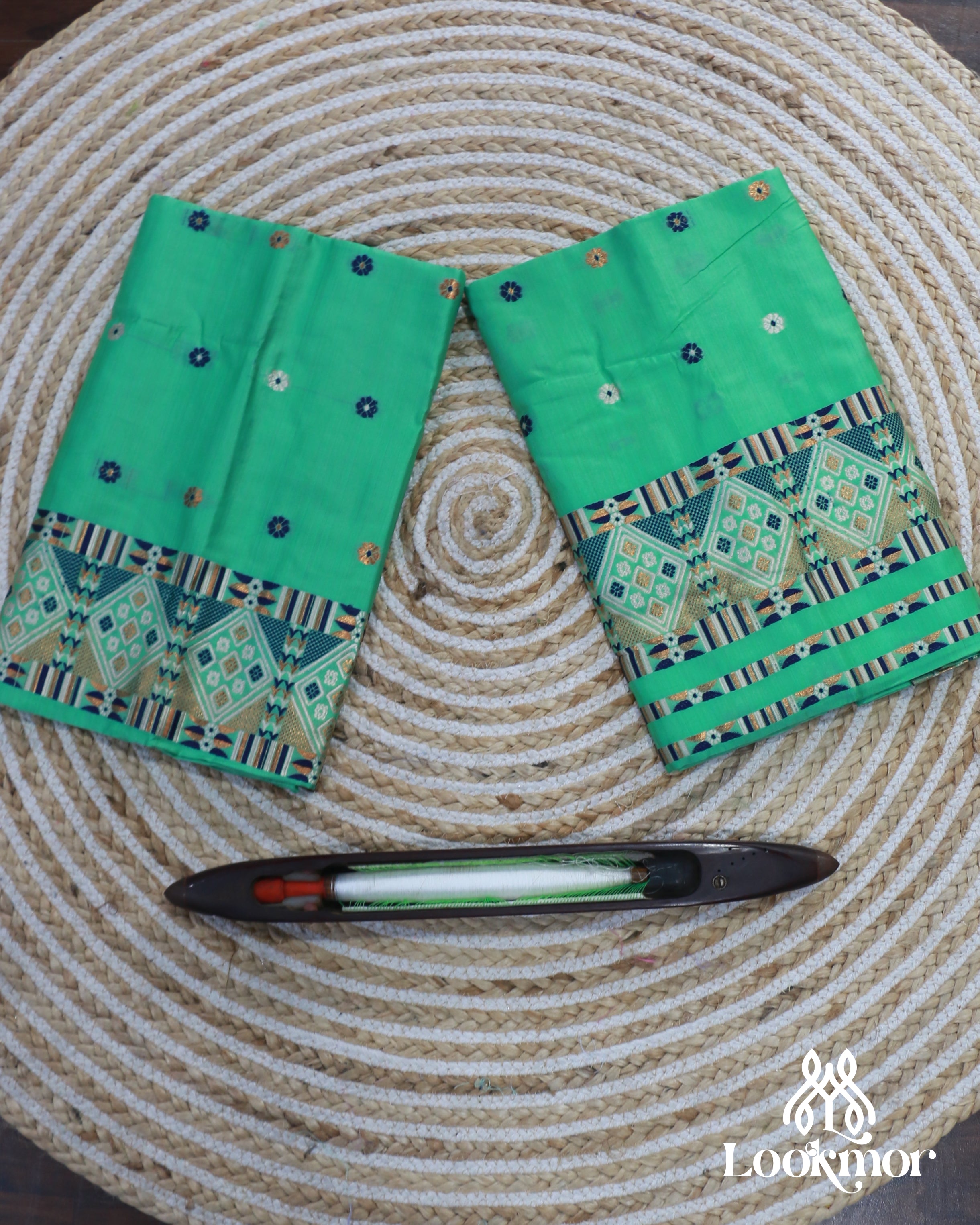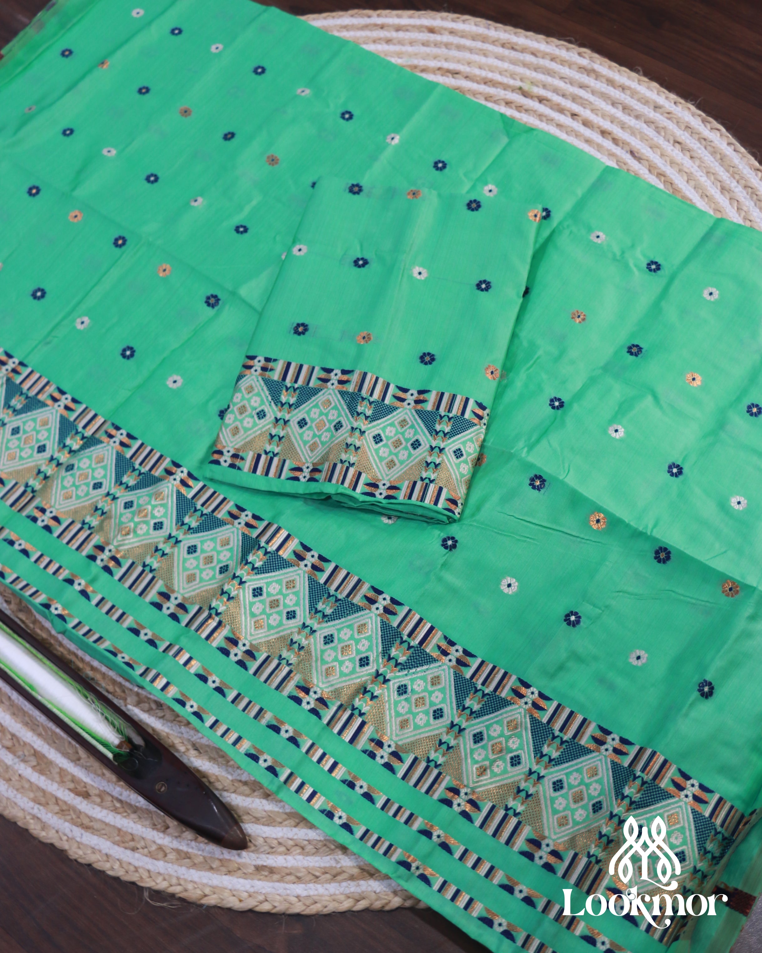 Light Green Beautiful Toss Paat Set Mekhela Sador
