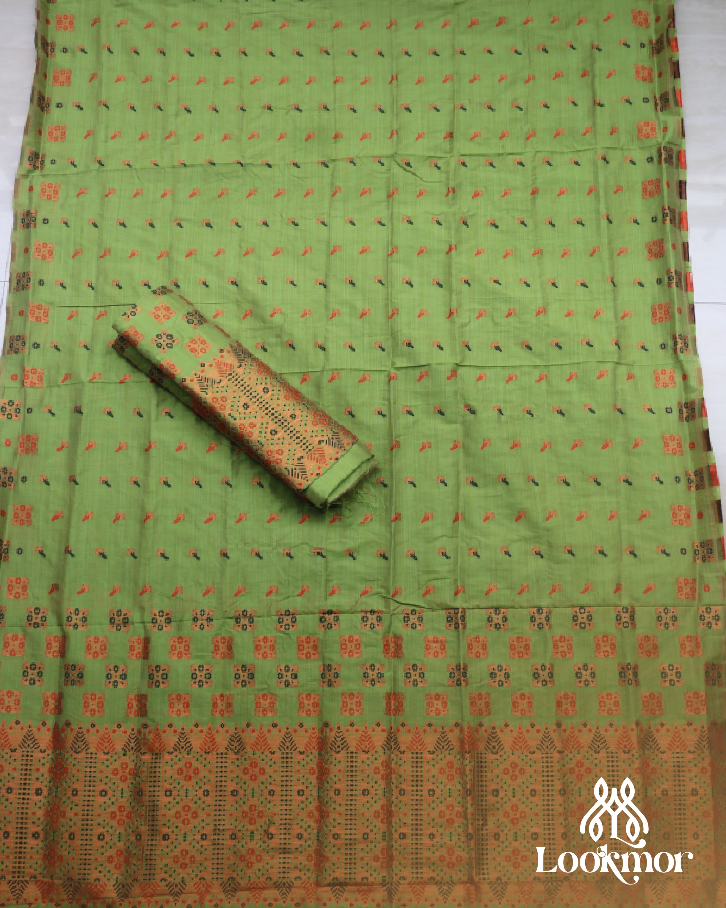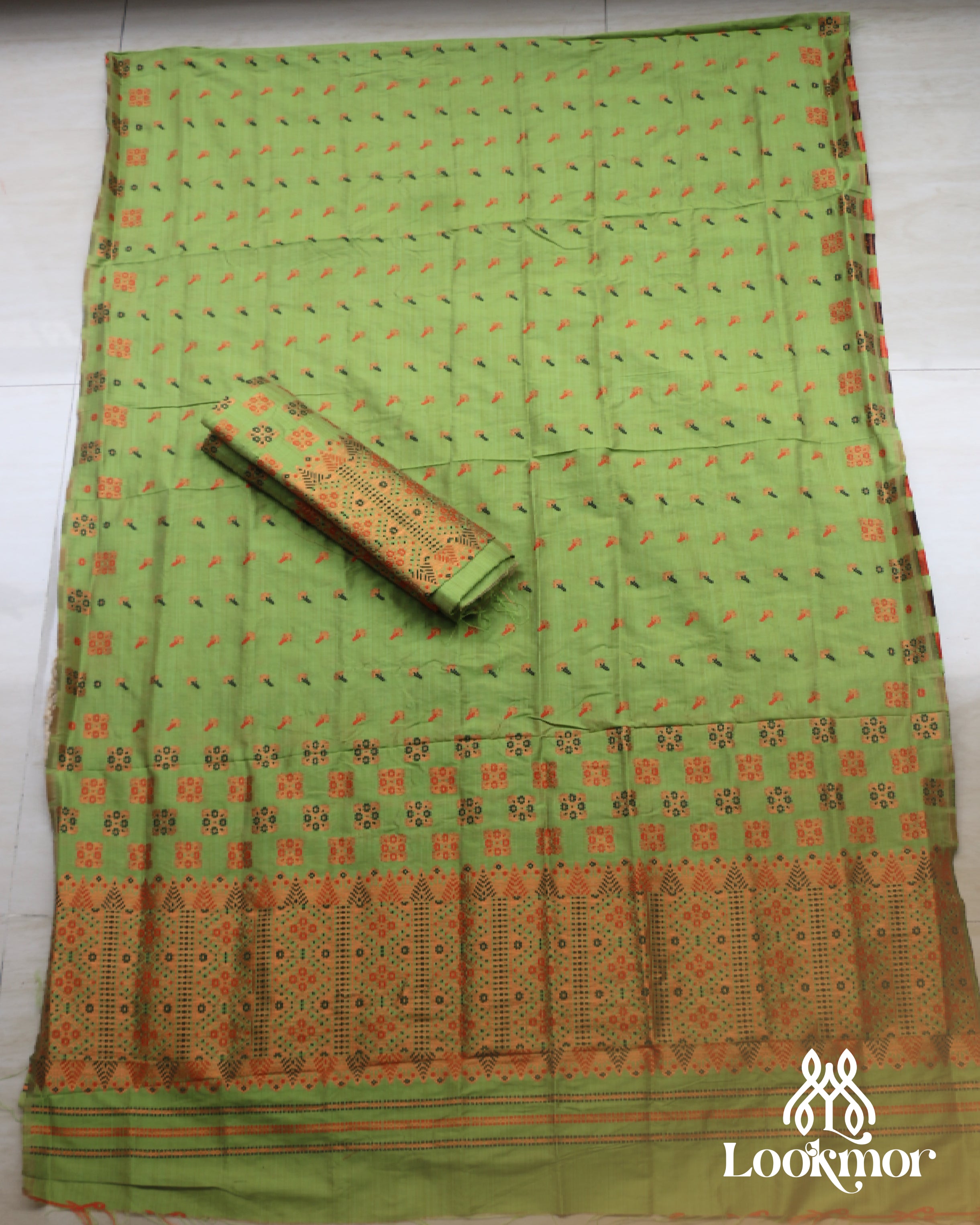 Light Green Copper Super Semi Paat Set Mekhela Sador