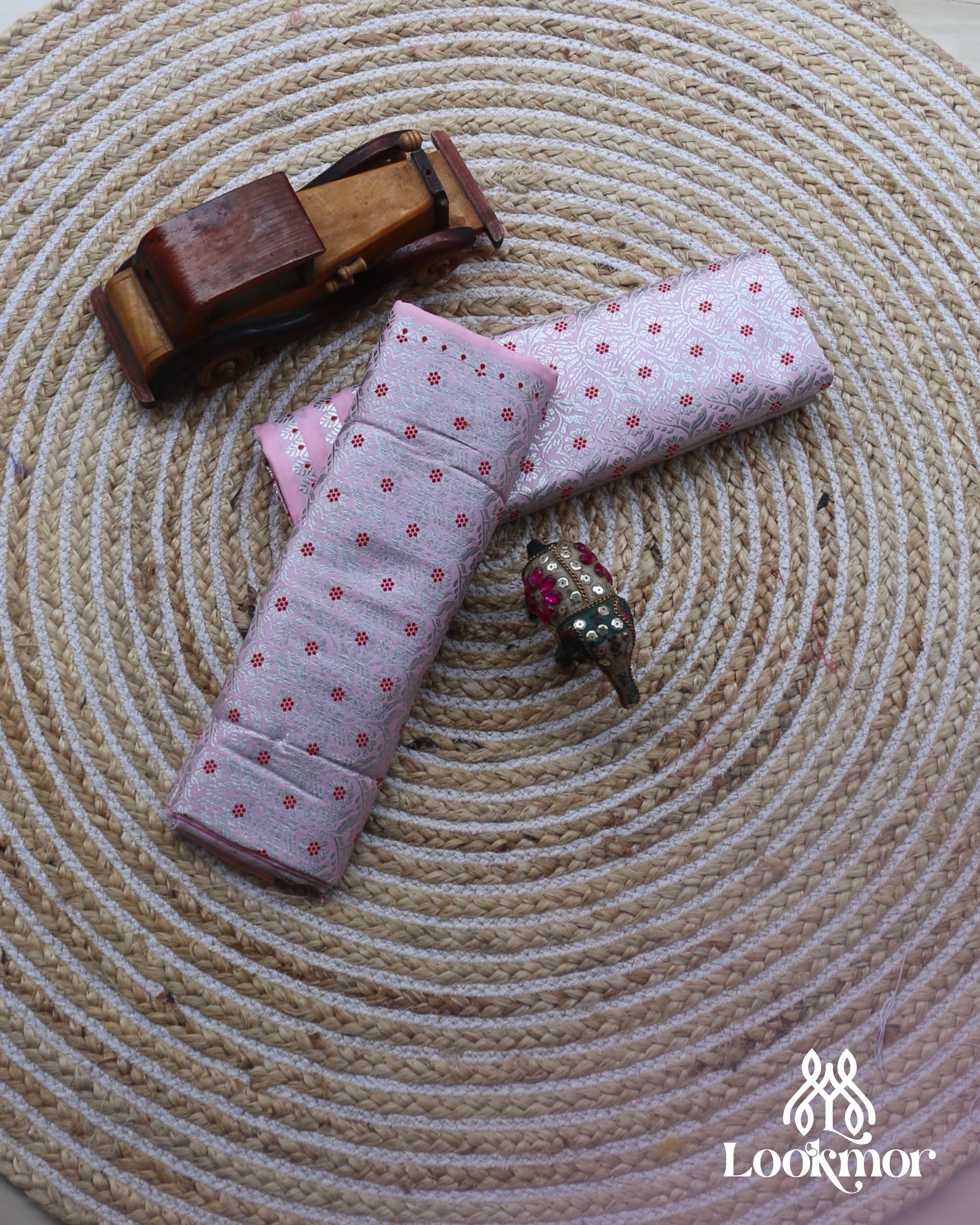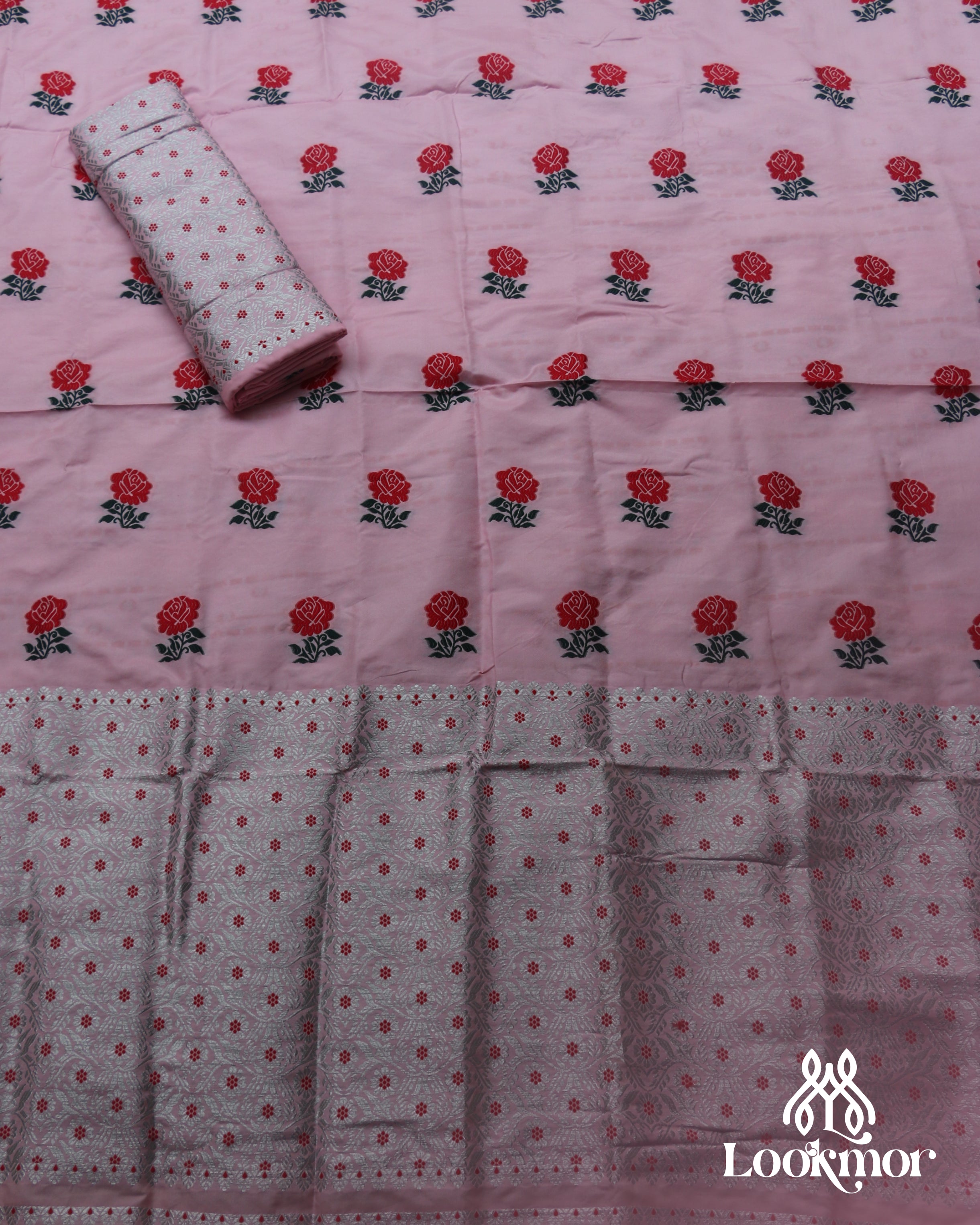 Light Pink Silver Jari Premium Semi paat Set Mekhela Sador