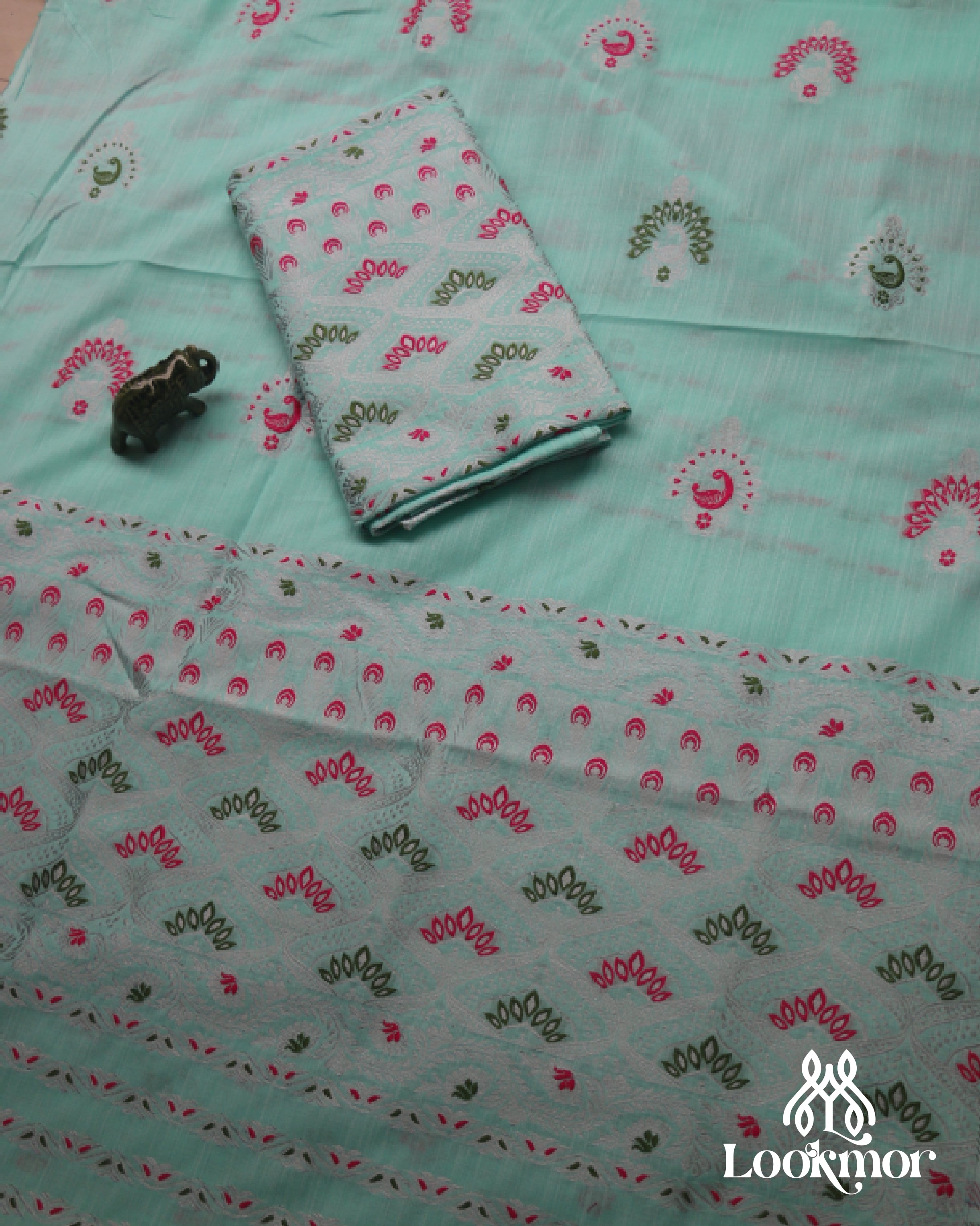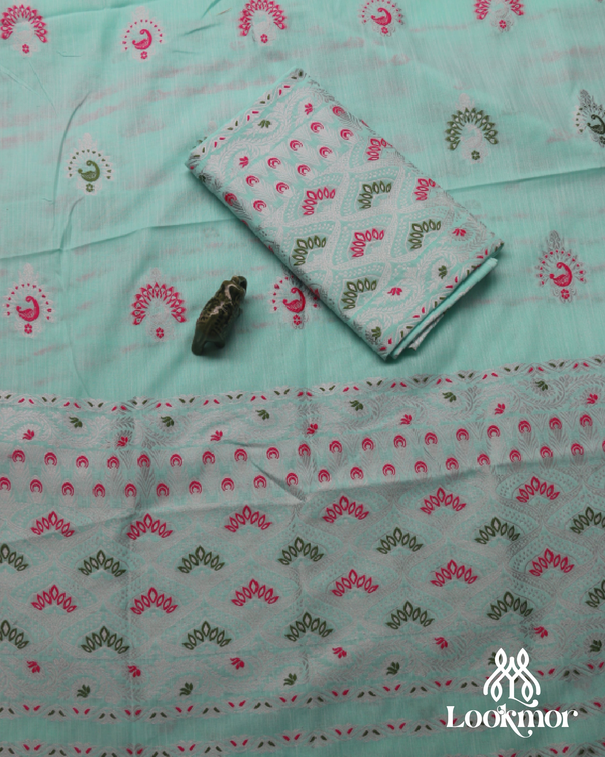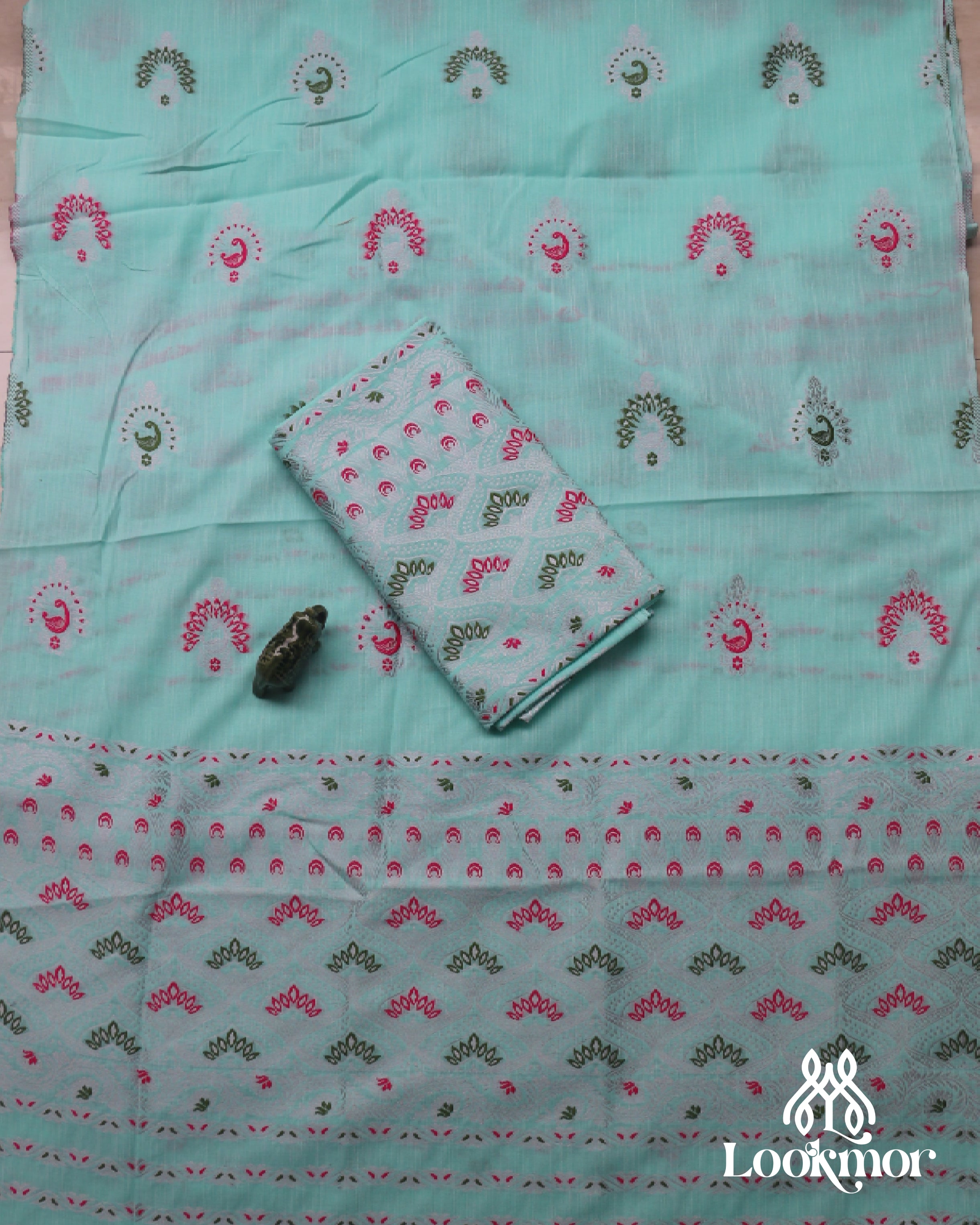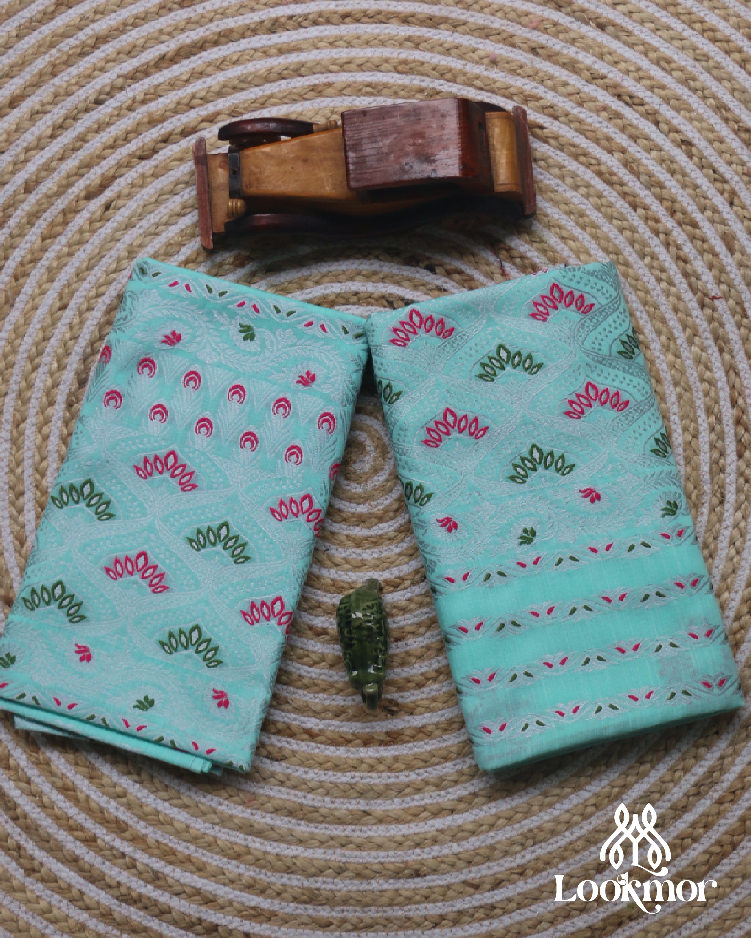 Sea Green Kesapaat Paat Set Mekhela Sador