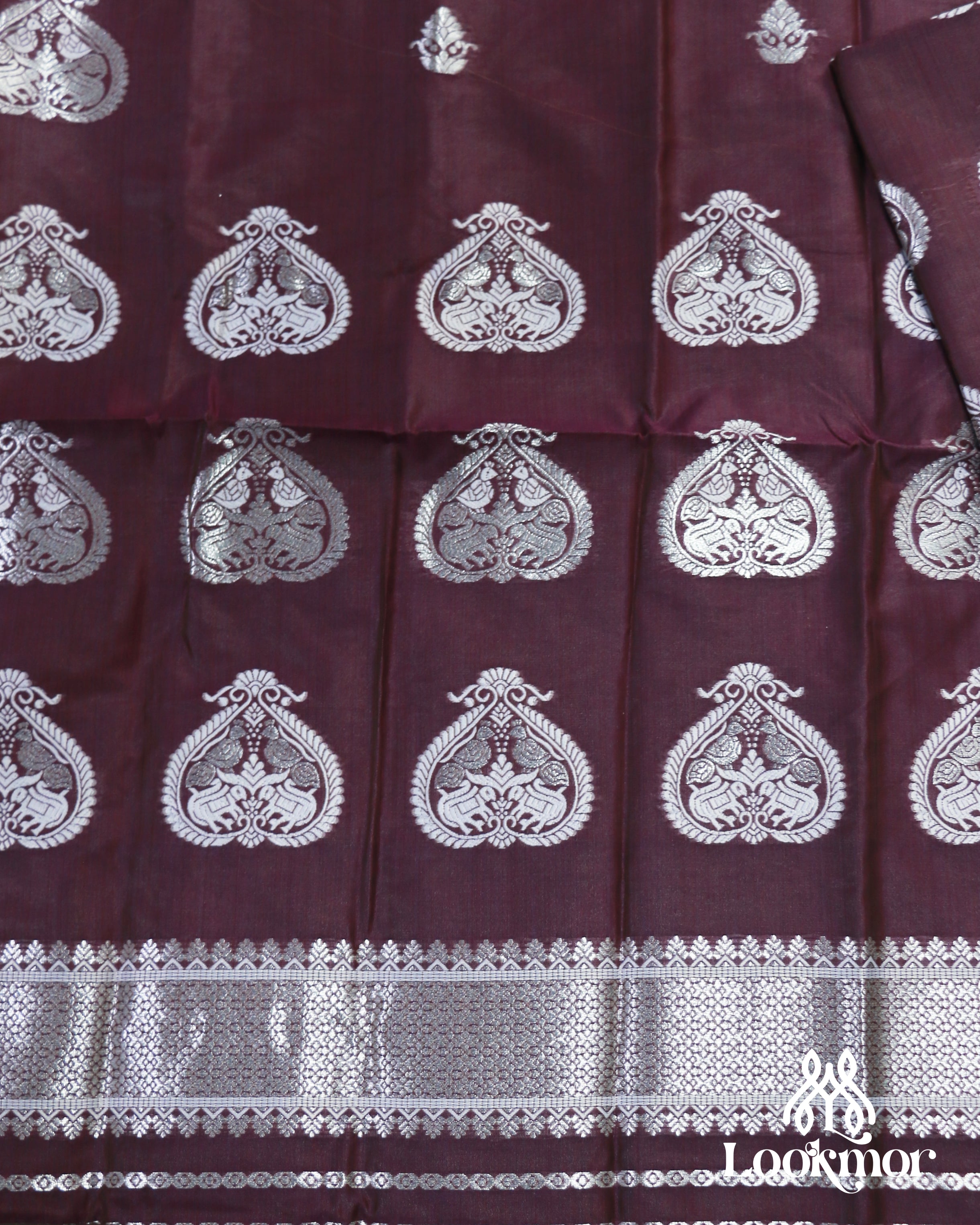 Luxurious Wine Super Semi Pat Mekhela Sador Set with Rich Traditional Charm