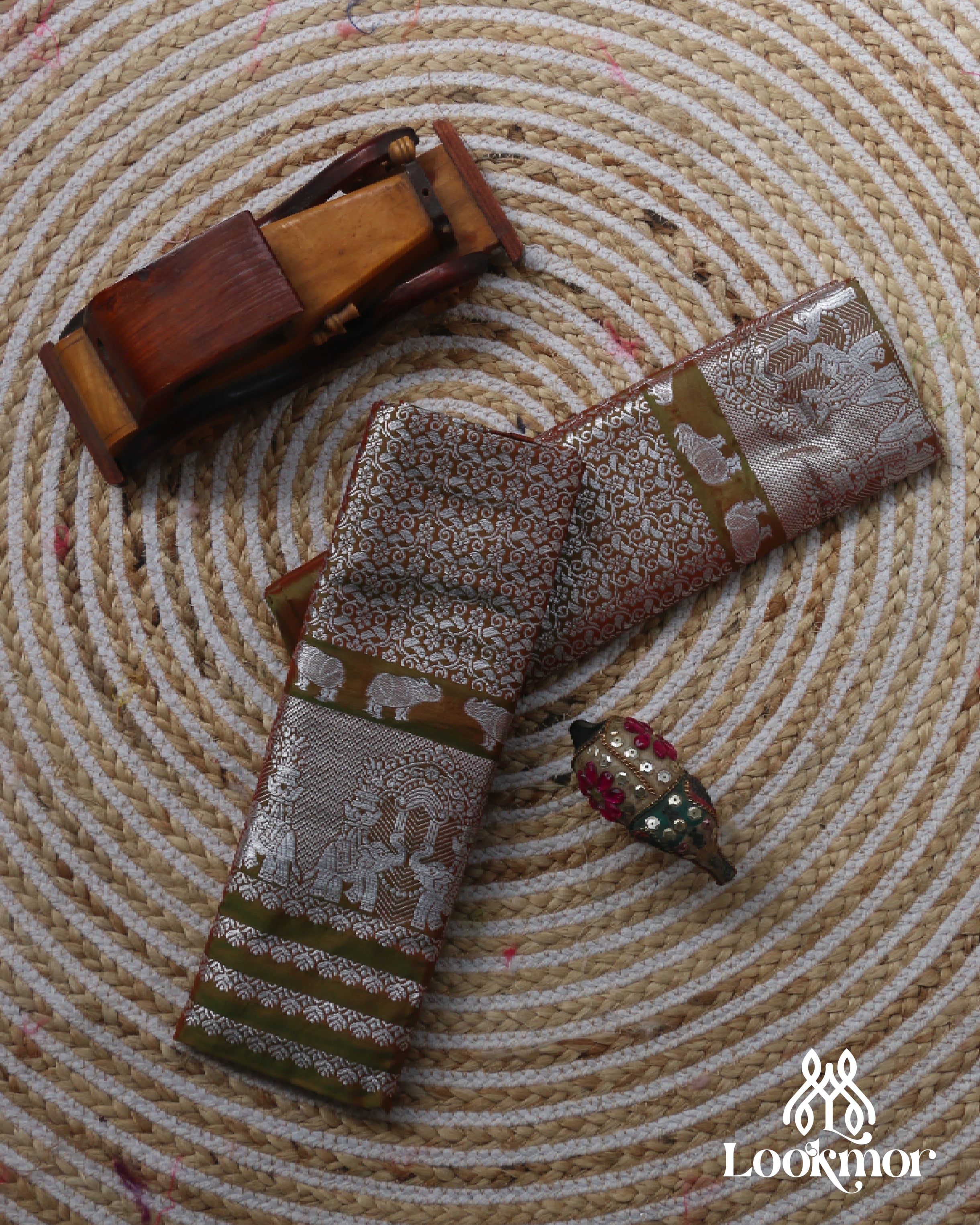 Mehndi Silver Jari Super Semi Paat Set Mekhela Sador
