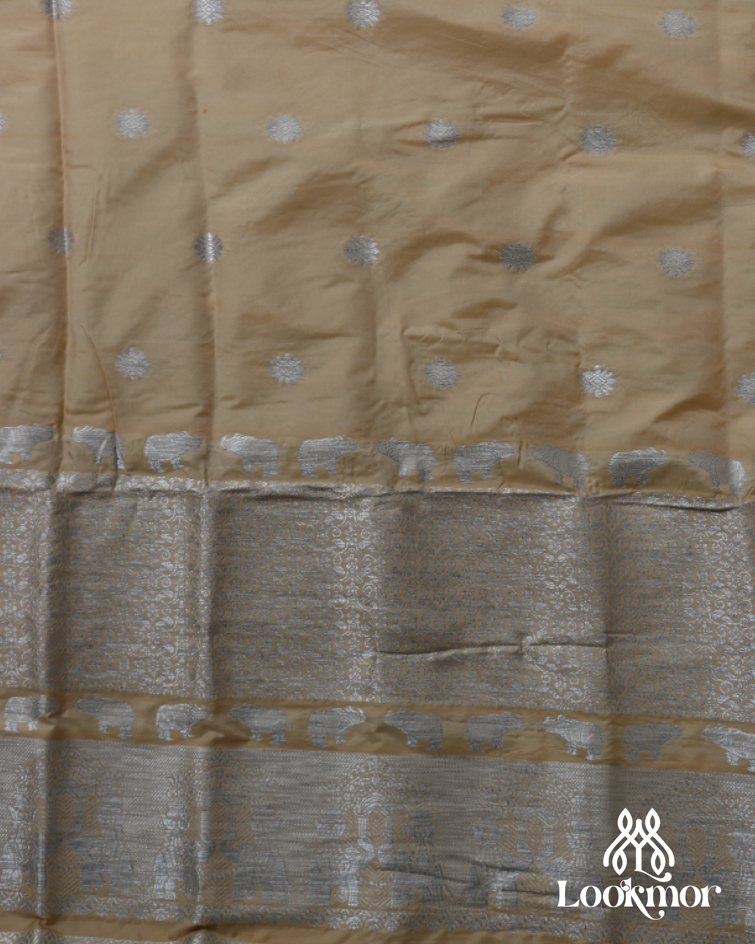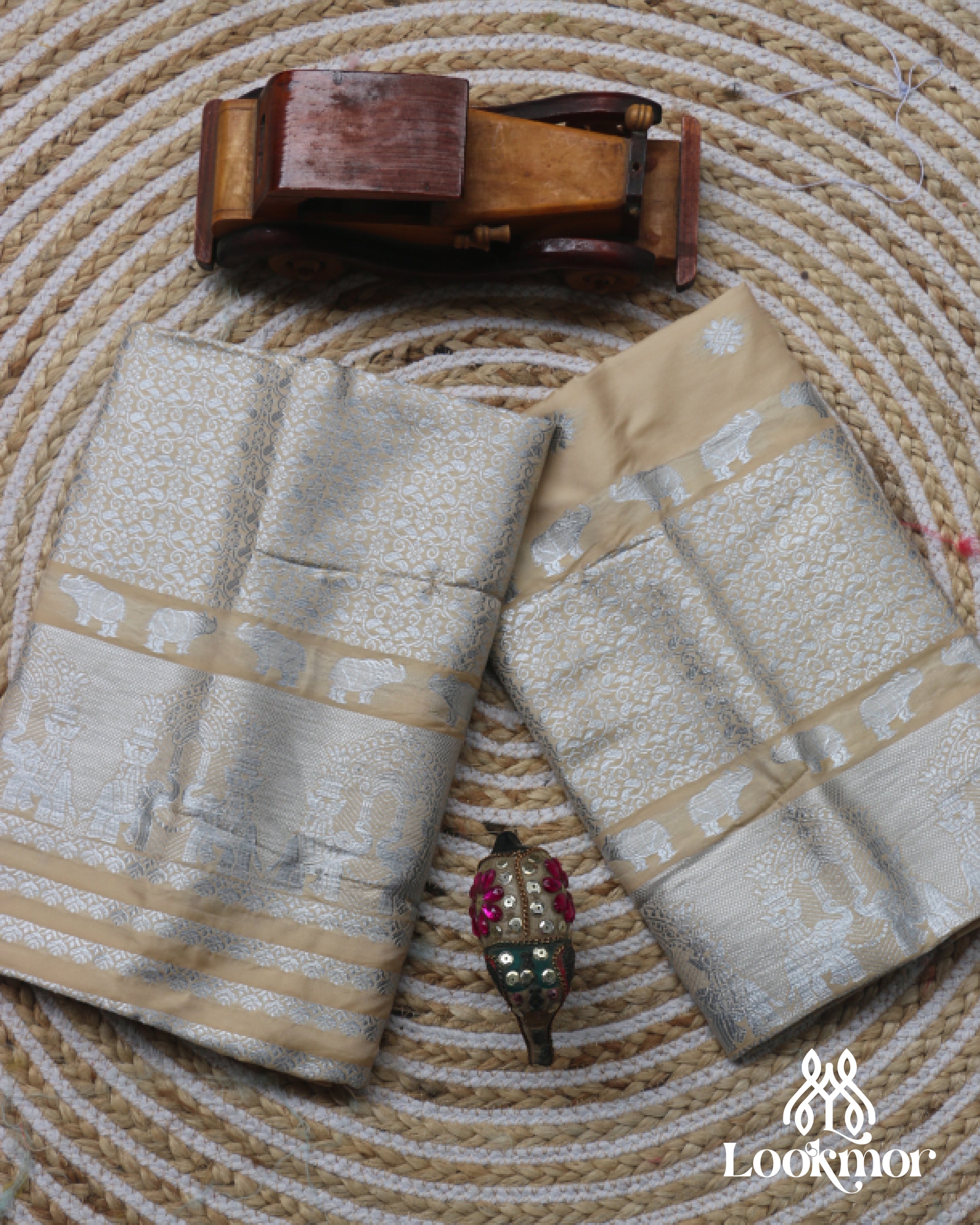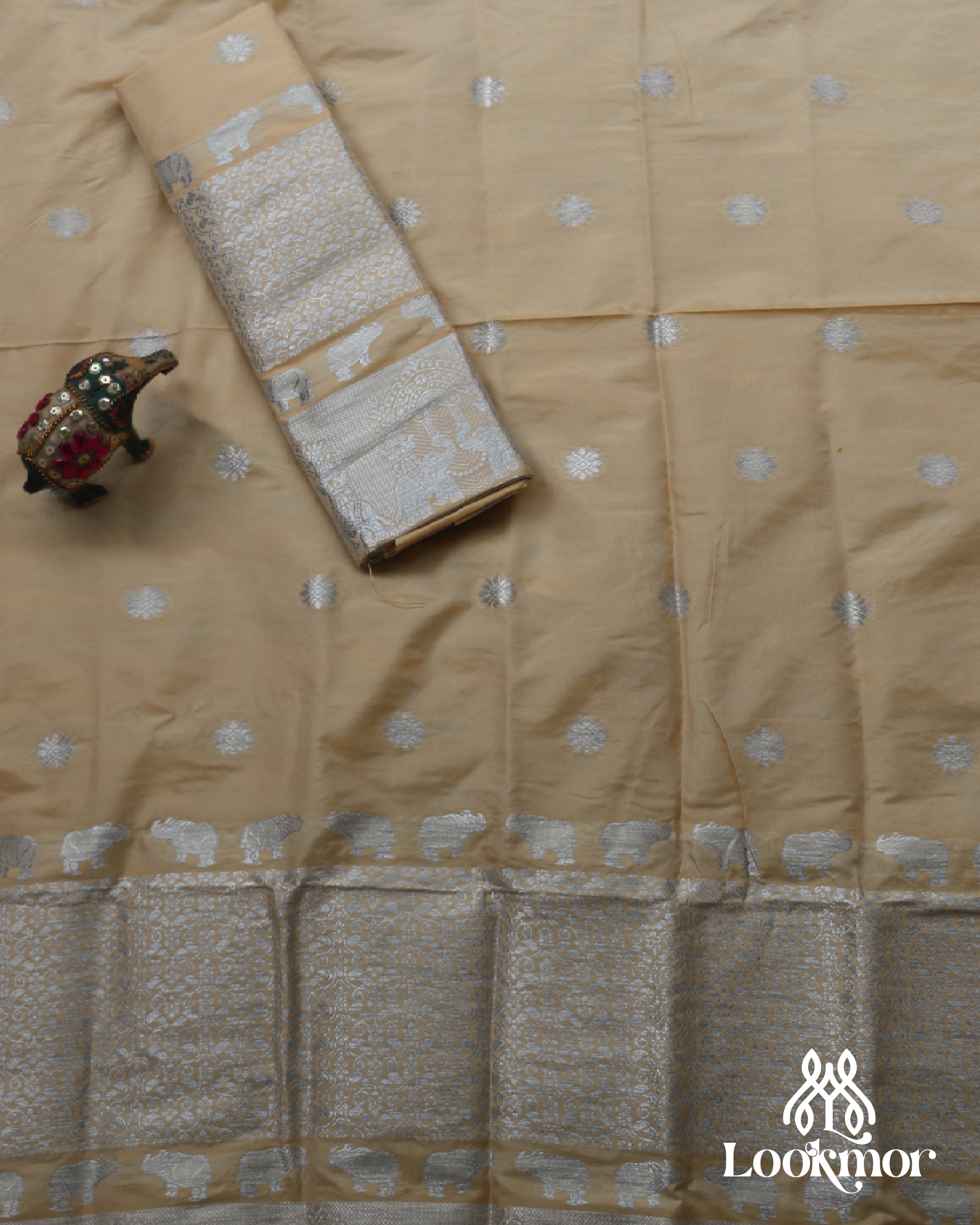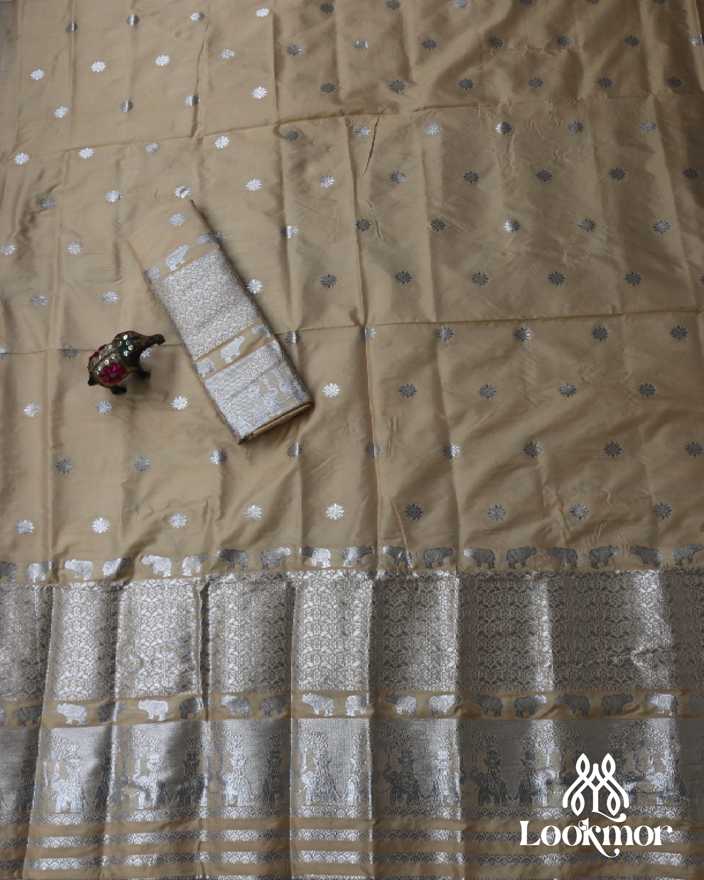 Off Cream Silver Jari Super Semi Paat Set Mekhela Sador