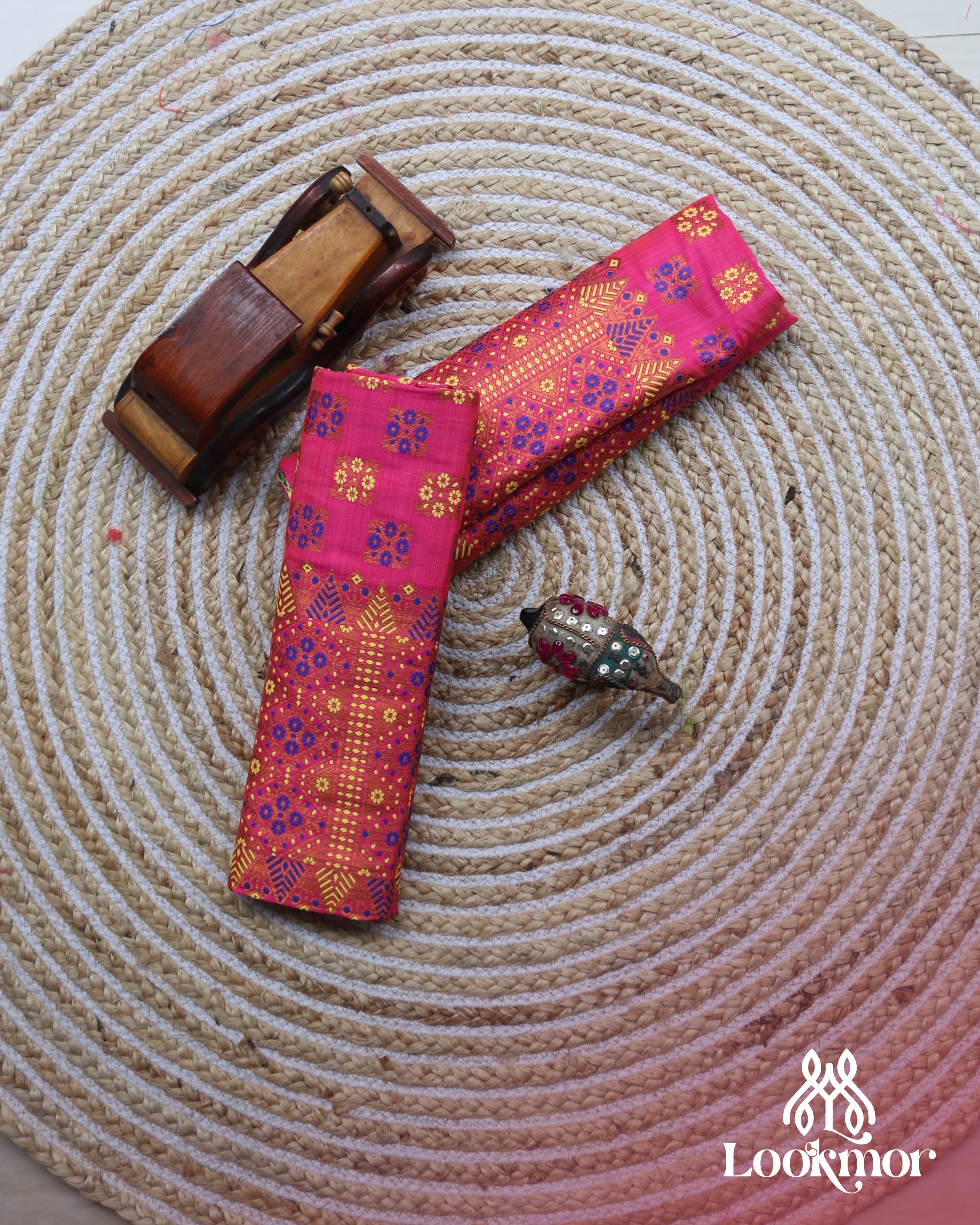 Pink Copper Jari Super Semi Paat Set Mekhela Sador