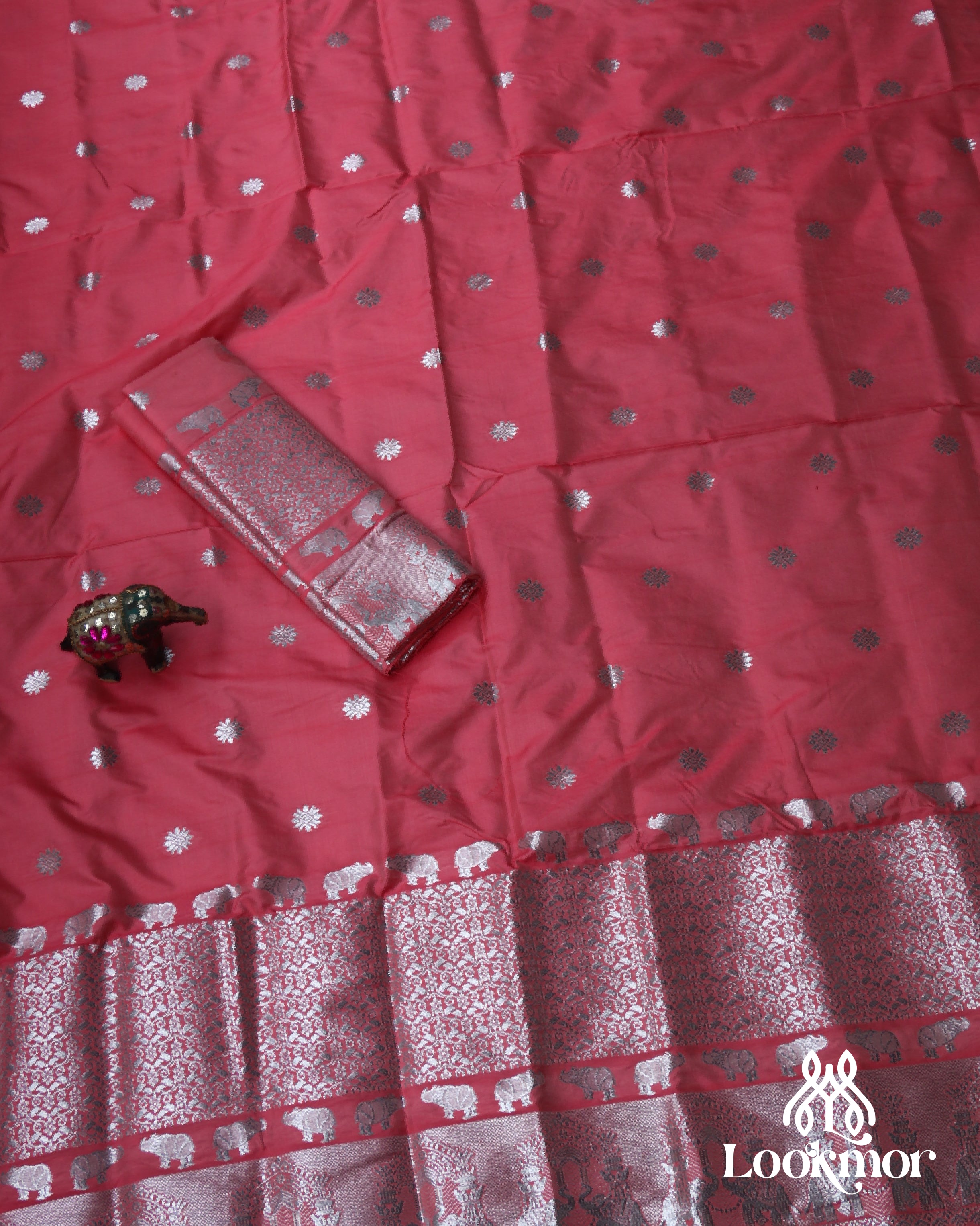 Pink Silver Jari Super Semi Paat Set Mekhela Sador