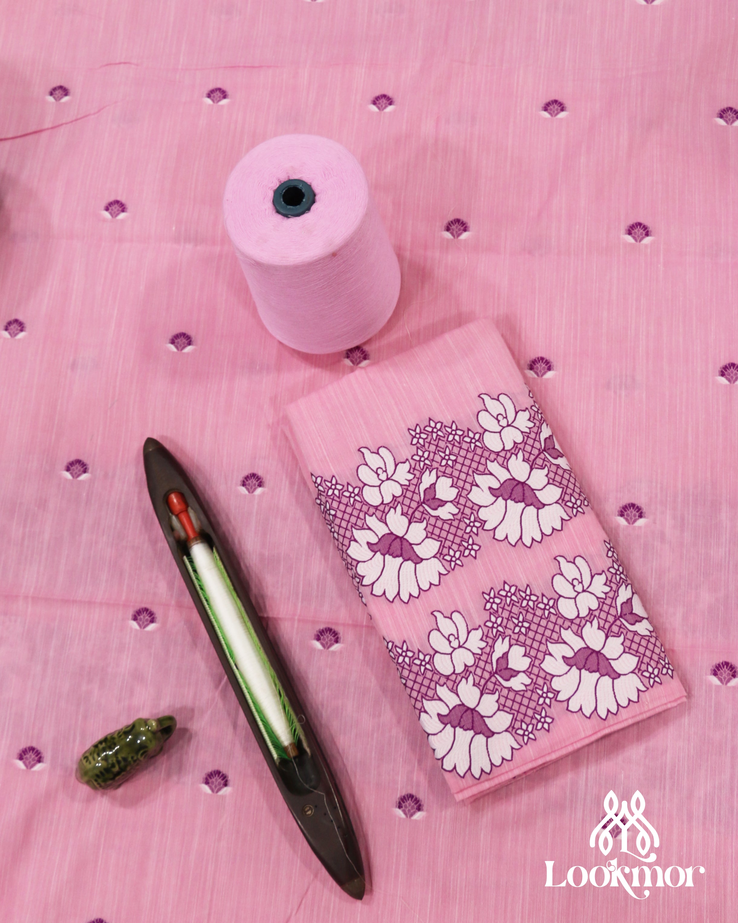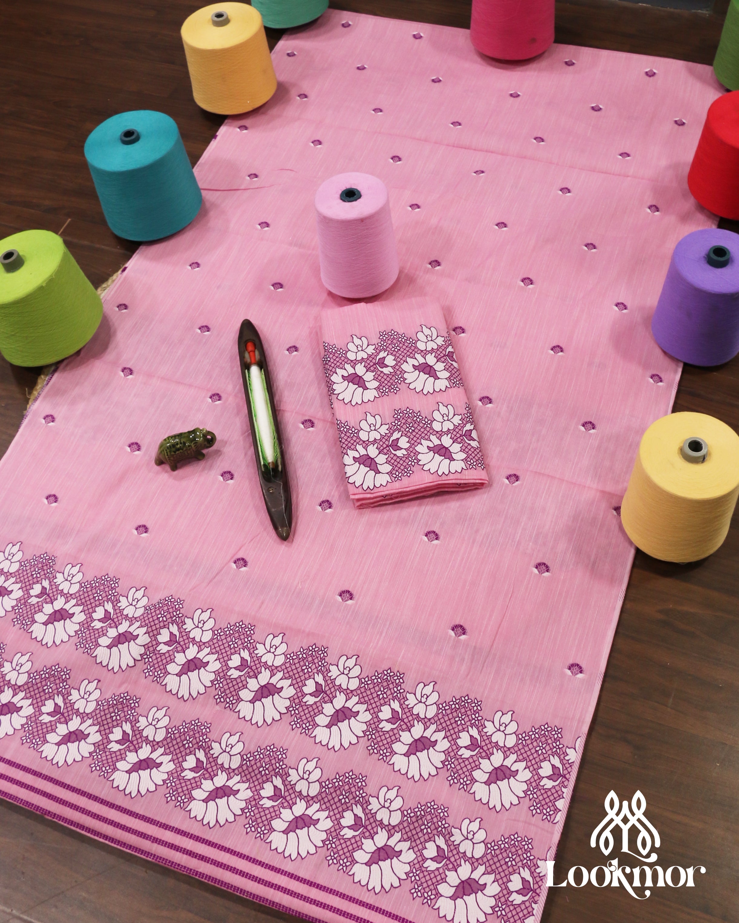 Premium Baby Pink Cotton Kesapaat Set Mekhela Sador with Jura