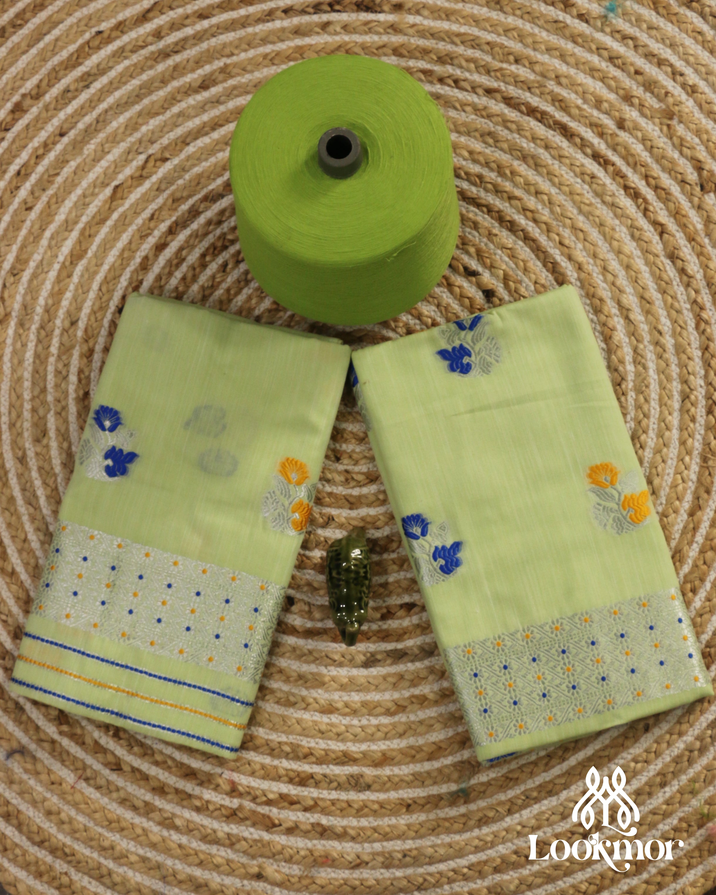 Premium Light Green Cotton Kesapaat Set Mekhela Sador with Jura