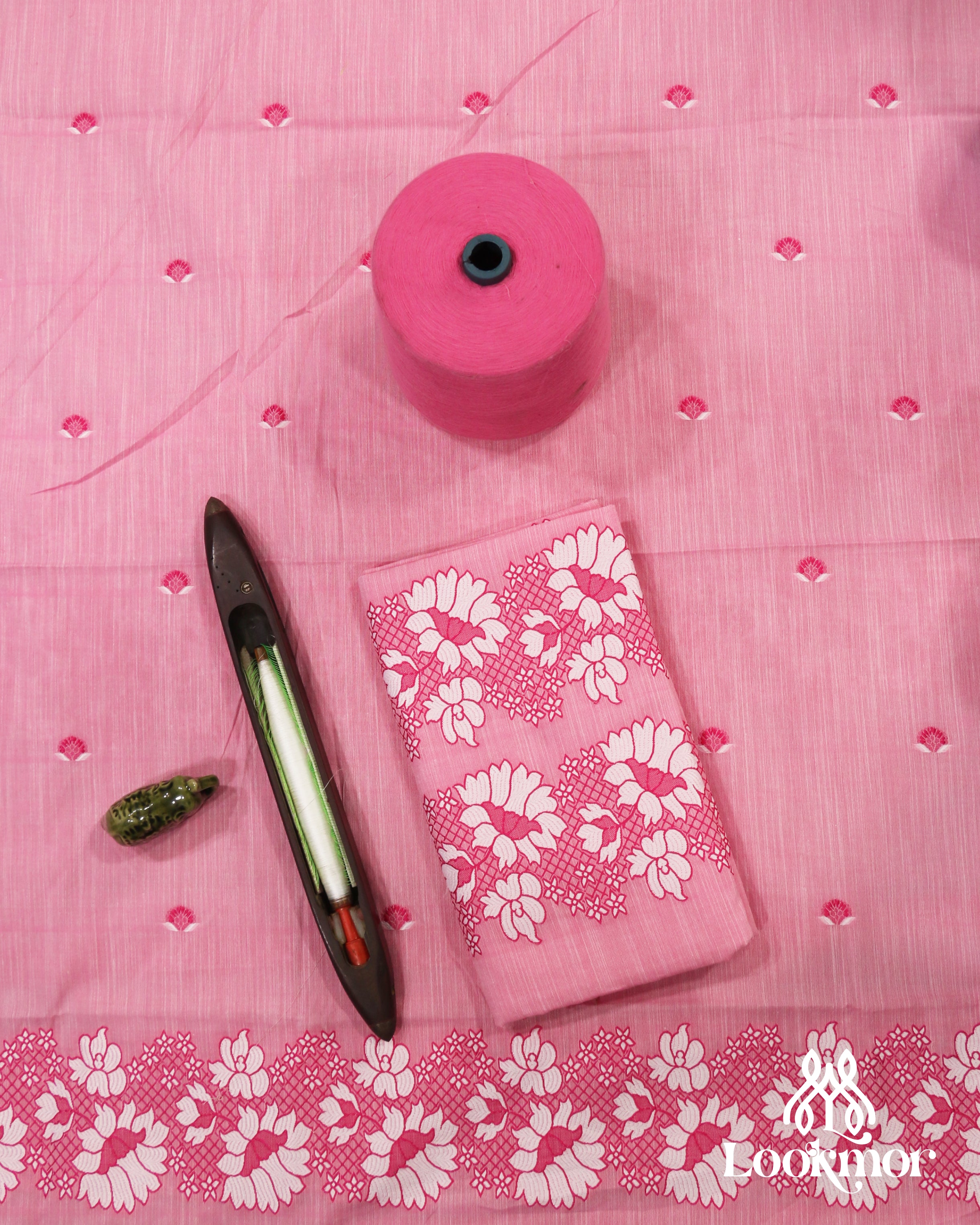 Premium Pink Cotton Kesapaat Set Mekhela Sador with Jura