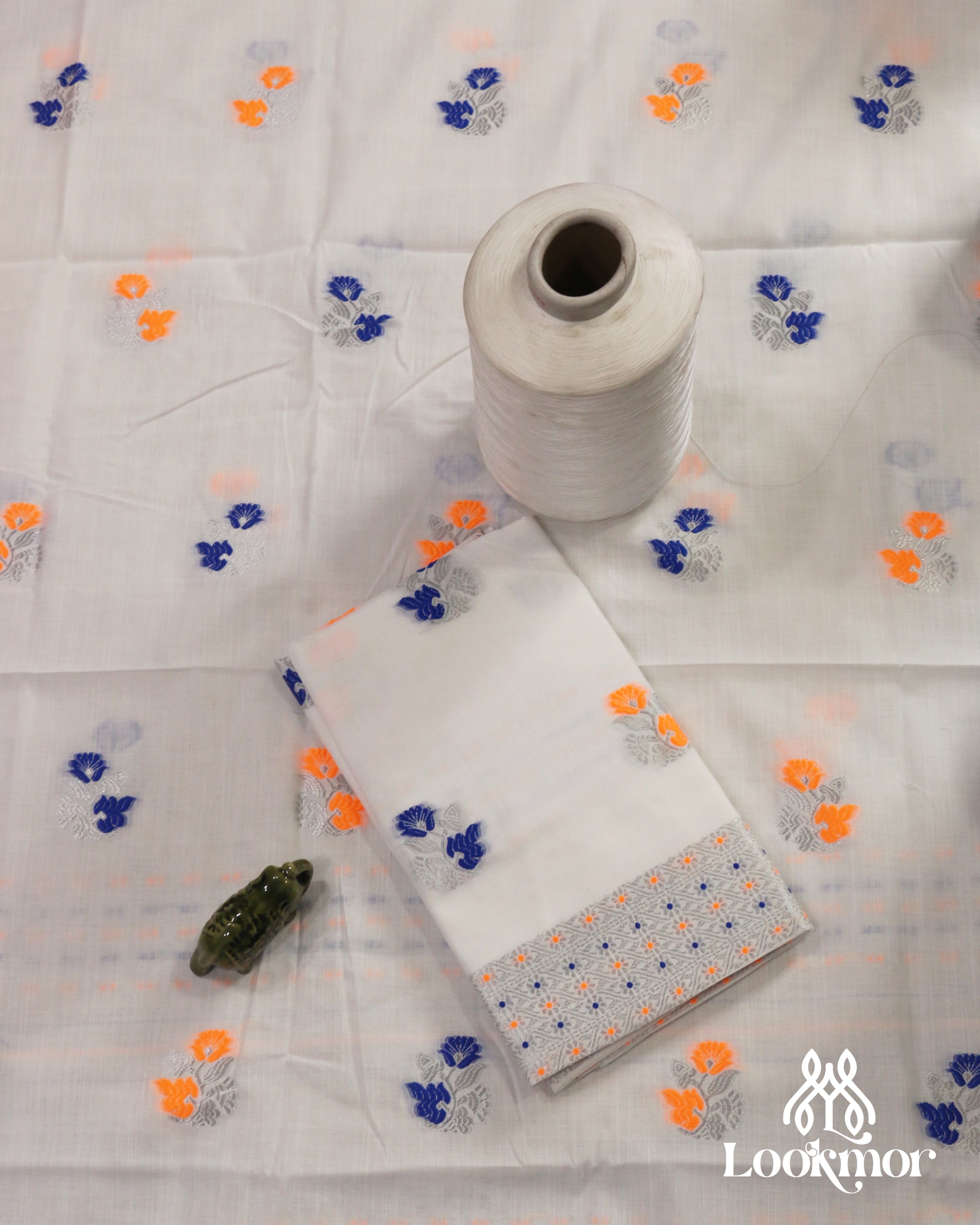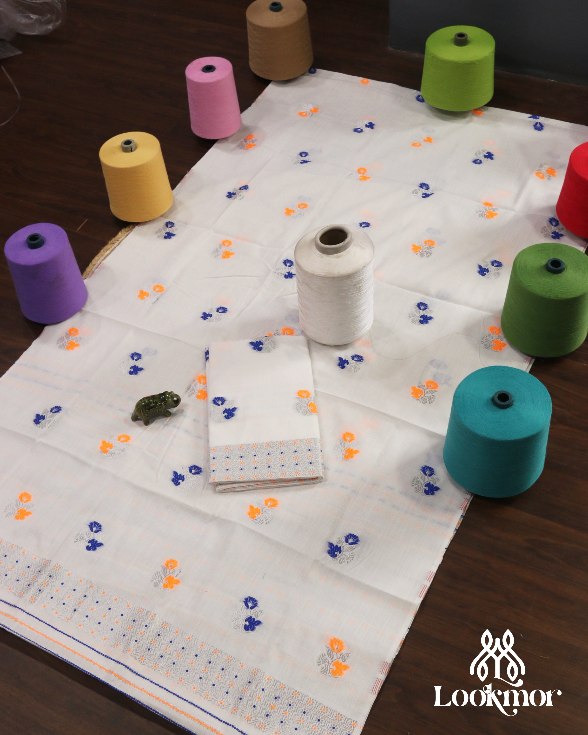 Premium White Cotton Kesapaat Set Mekhela Sador with Jura
