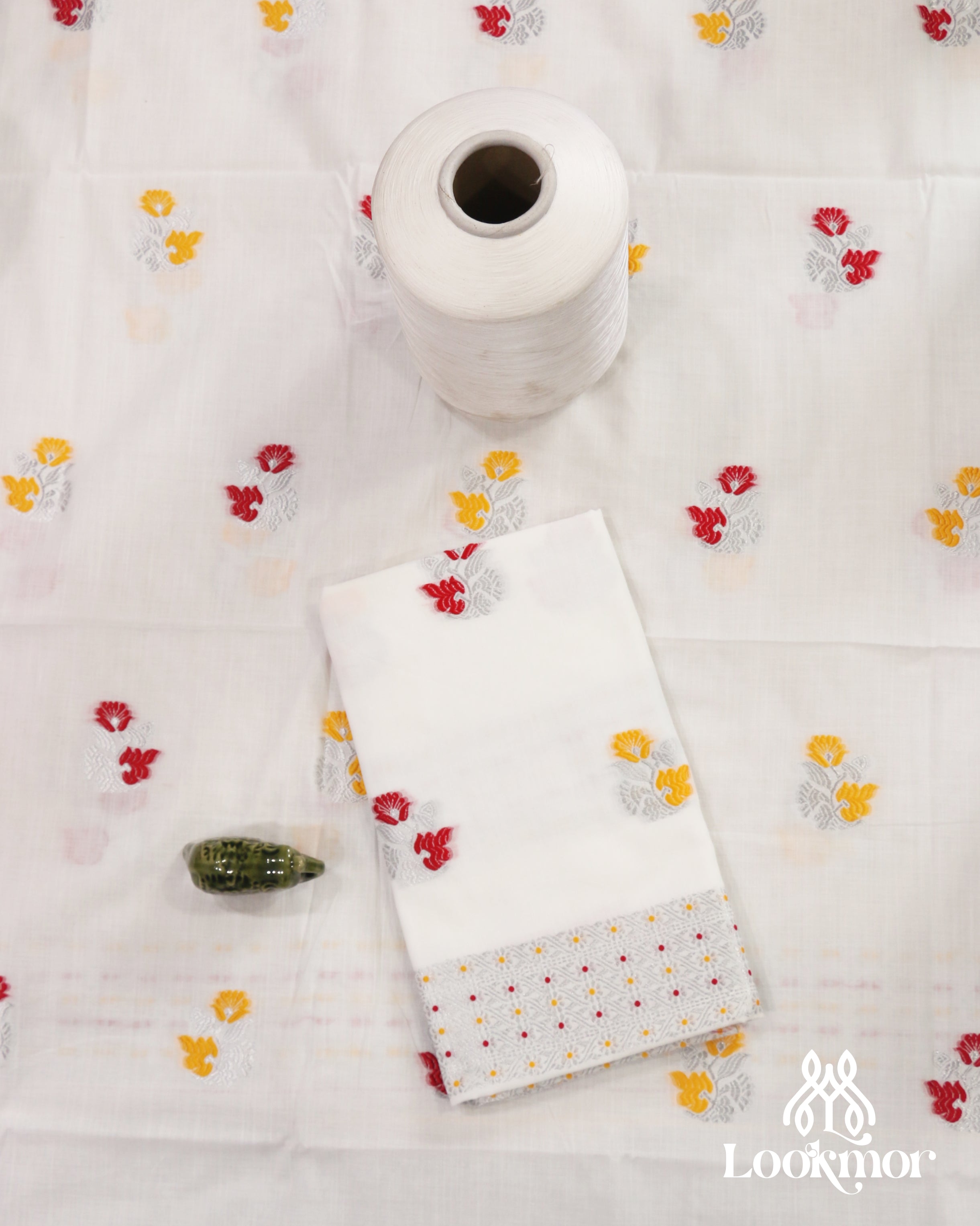 Premium White Cotton Kesapaat Set Mekhela Sador with Jura