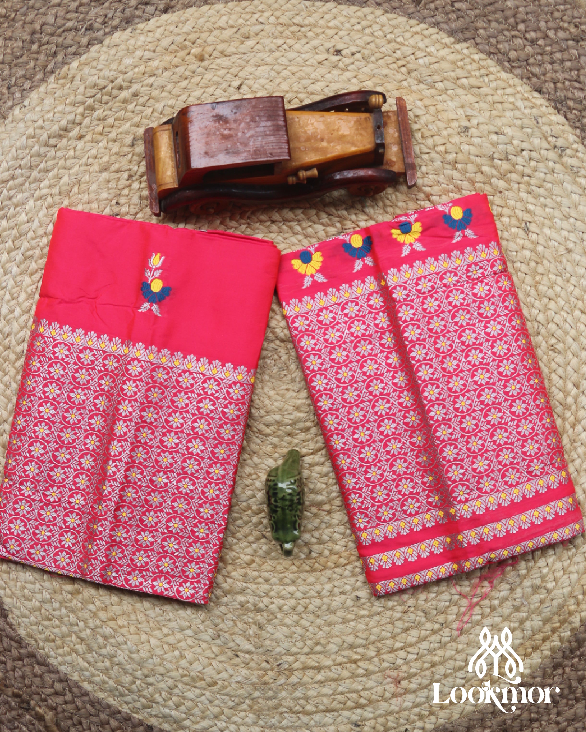 Chador with Un-stitched Lace: 2.75 Meters Machine-Weaving Unstitched Mekhla: 1.75 Meters Machine-Weaving Unstitched Blouse Piece: 0.75 Meters...
