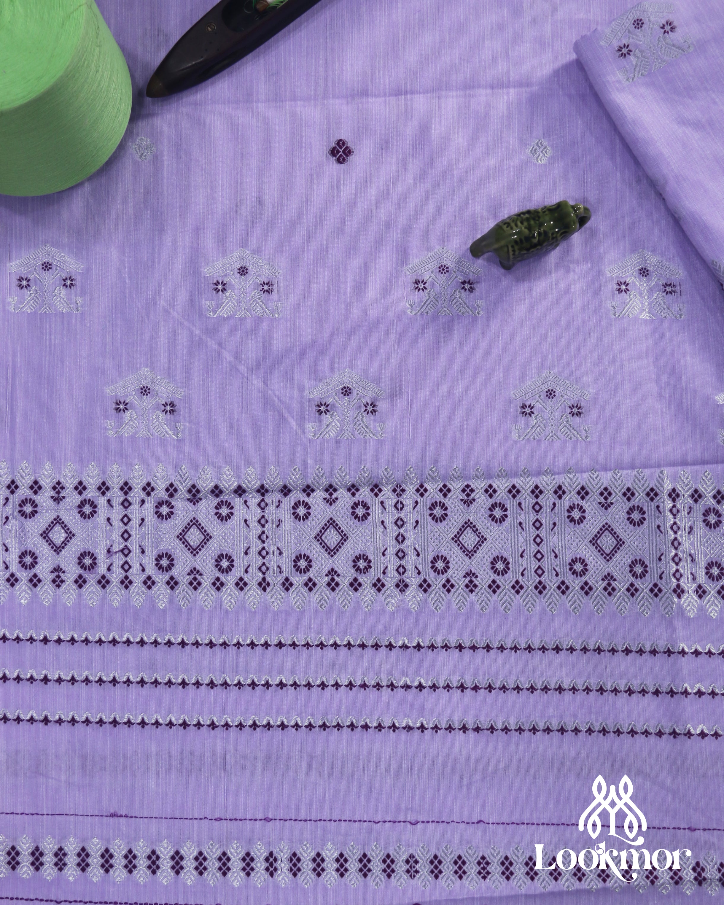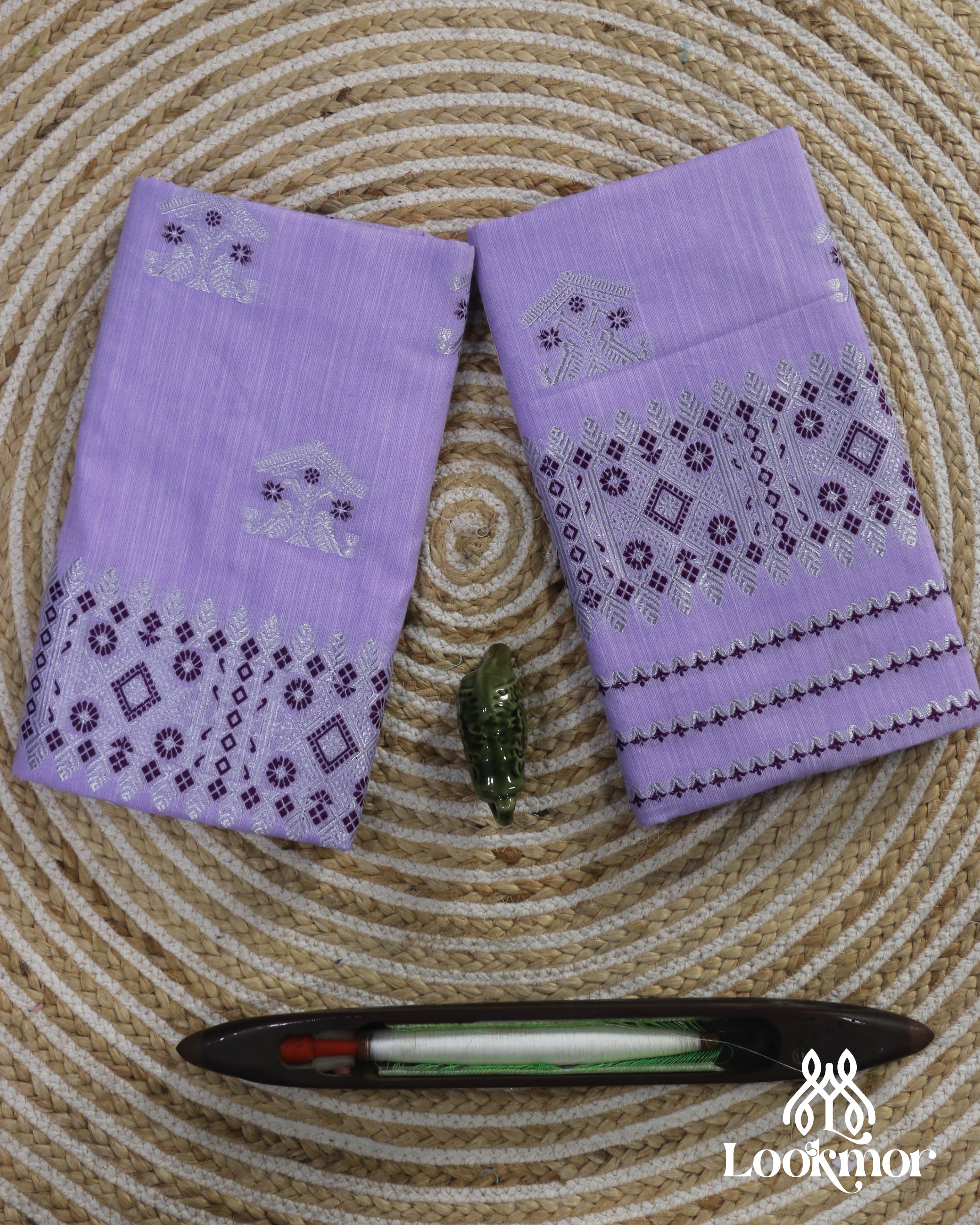 Royal Purple Cotton Kesapaat Traditional Mekhela Sador Set with Intricate Jura Detailing