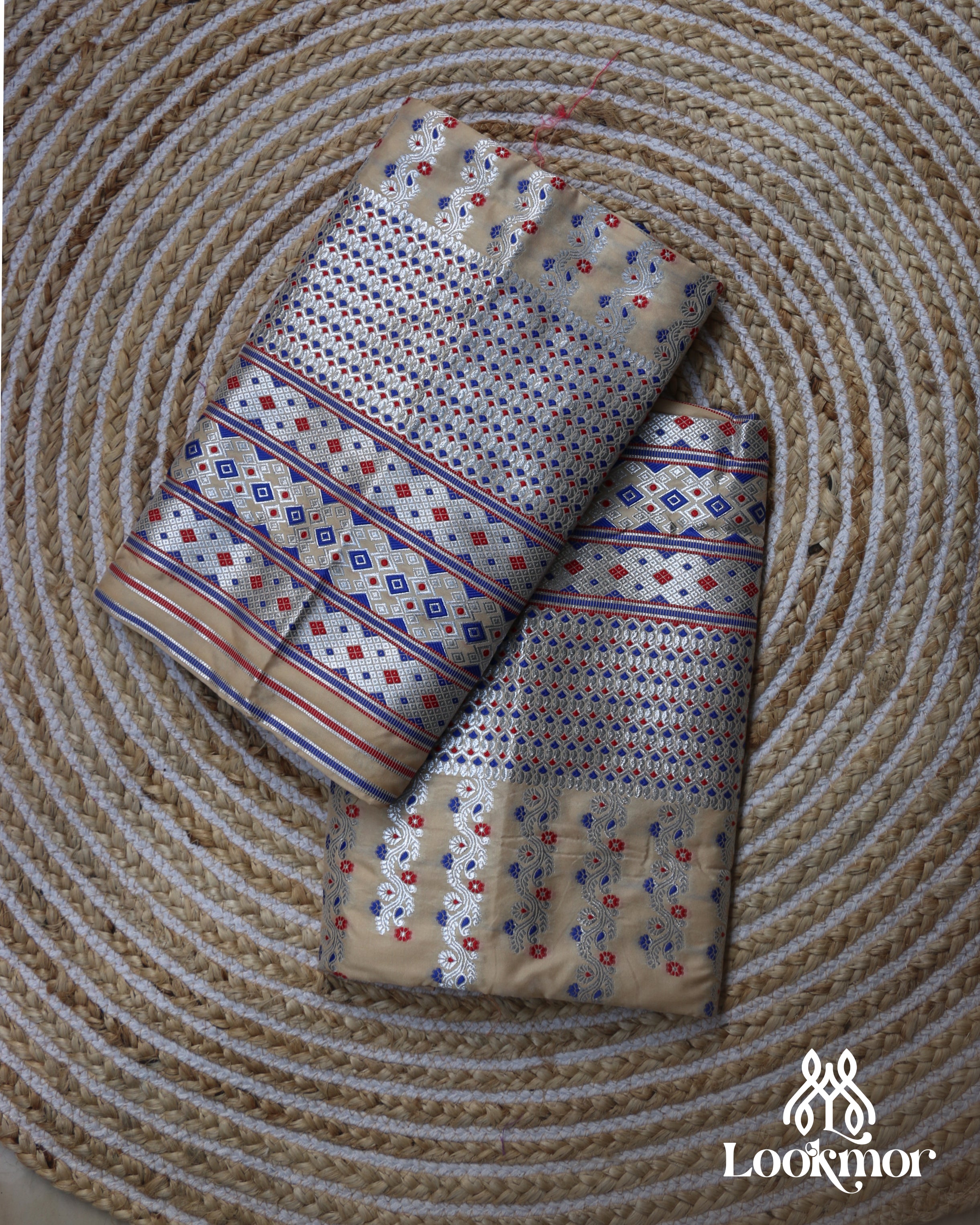 Beige Silver Jari Premium Semi paat Set Mekhela Sador