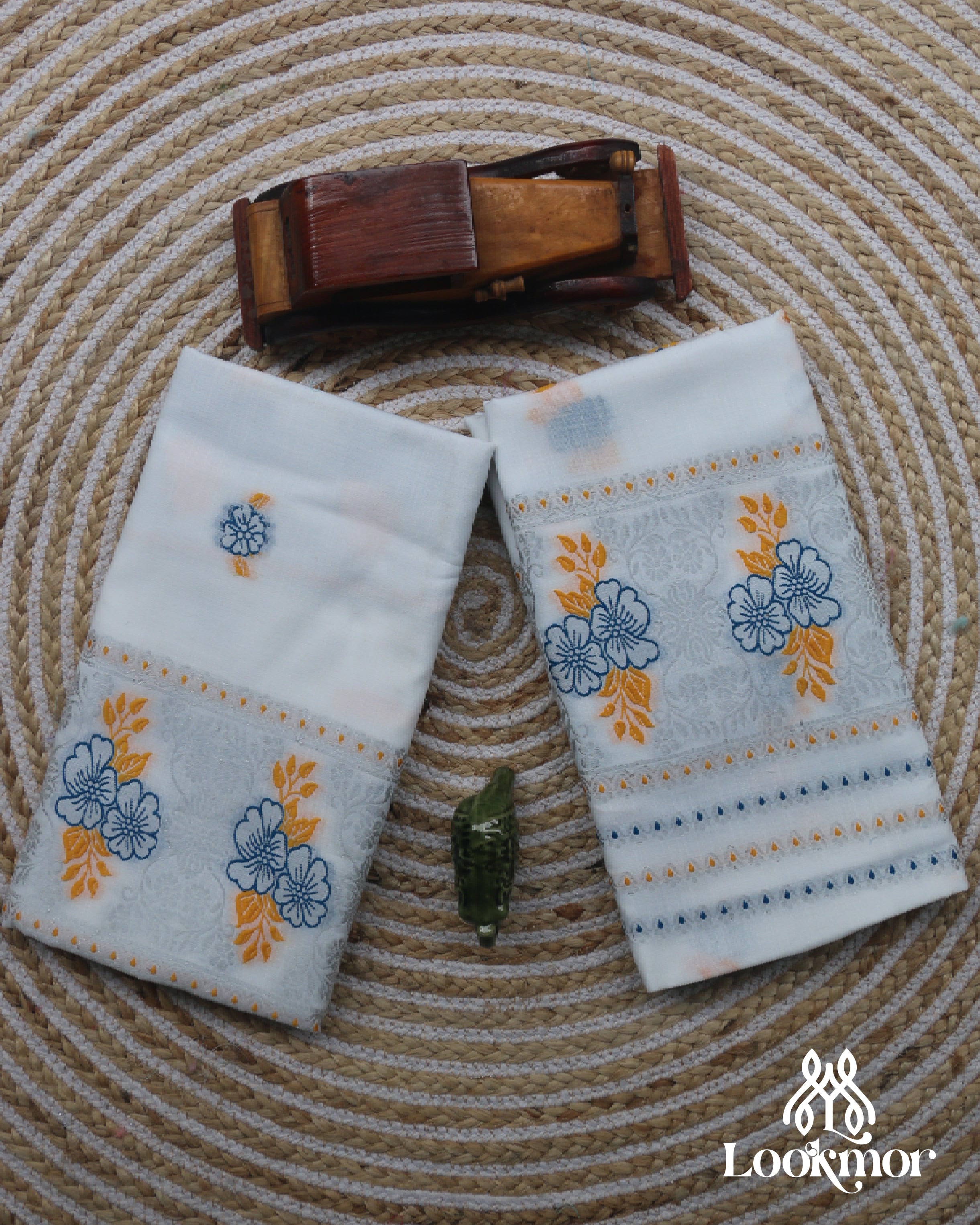 Package Contents: 1 Sador, 1 Mekhela & 1 Blouse
