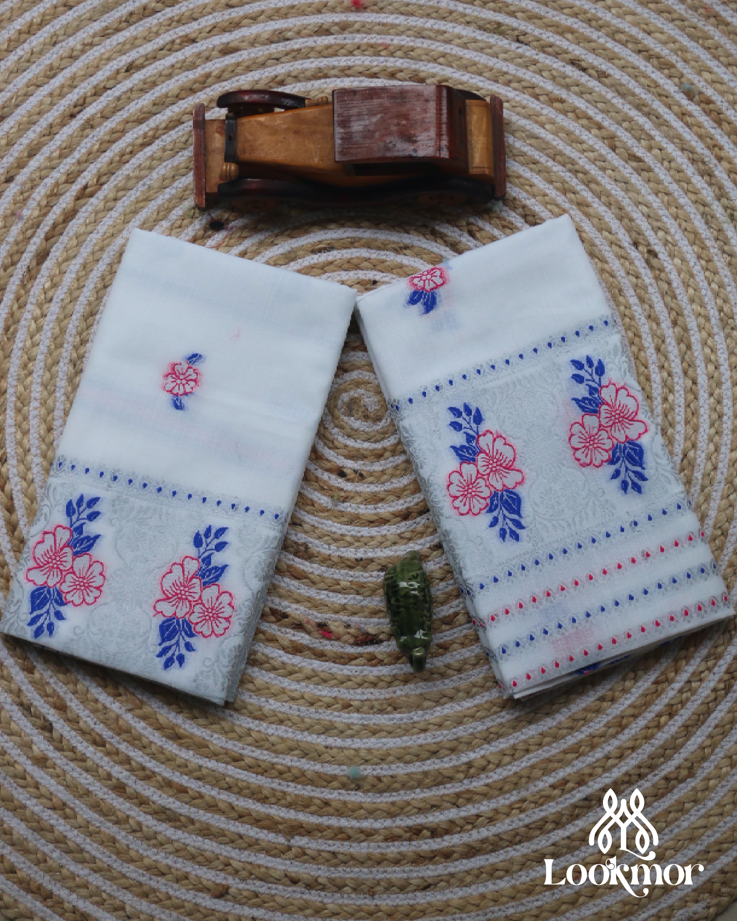 Package Contents: 1 Sador, 1 Mekhela & 1 Blouse