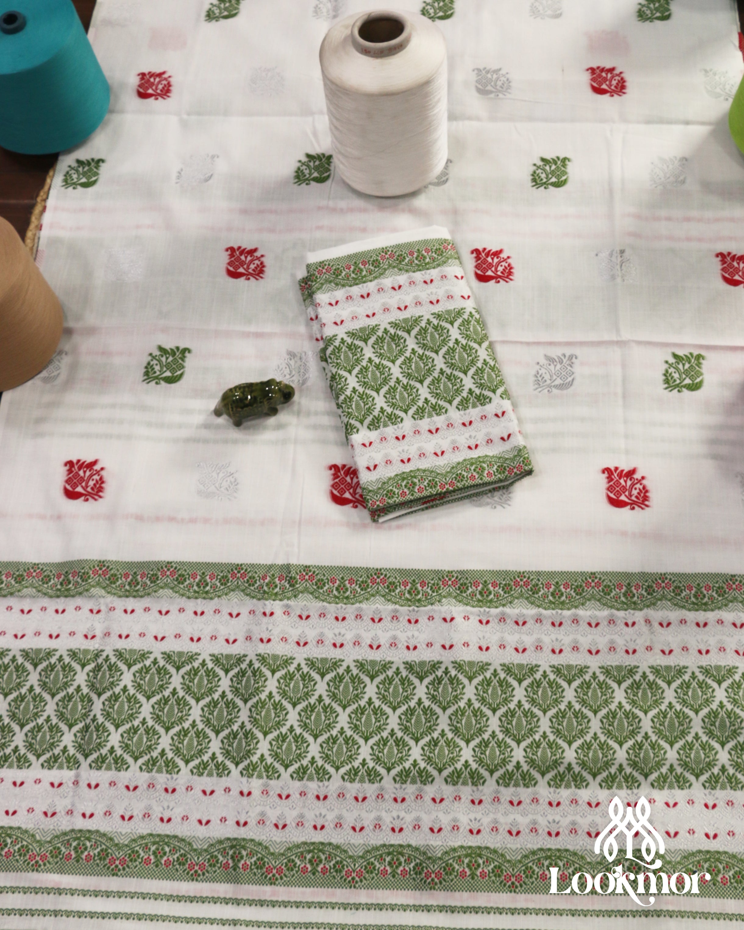 Premium White Cotton Kesapaat Set Mekhela Sador with Jura