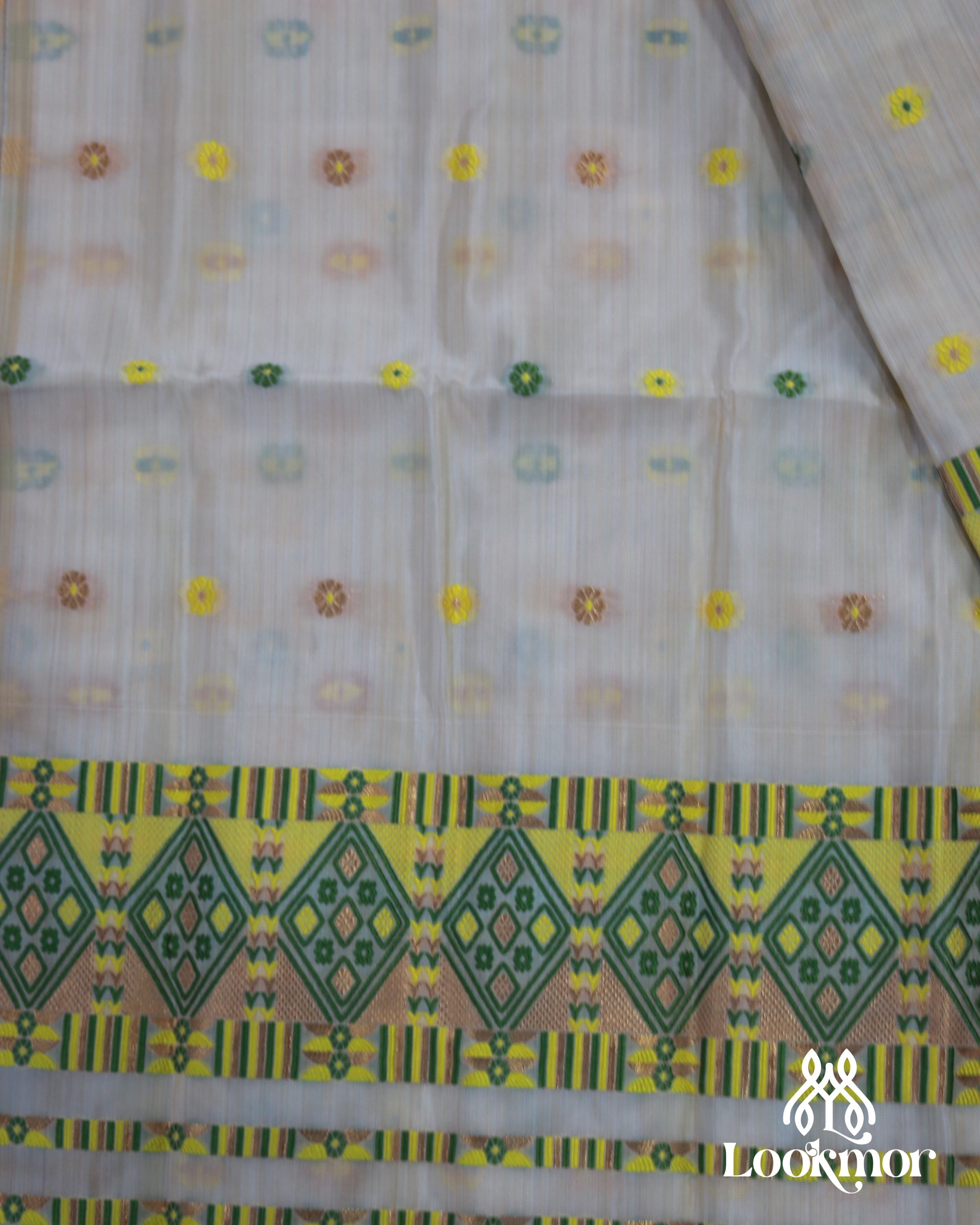 White Soft Charm Toss Paat Set Mekhela Sador