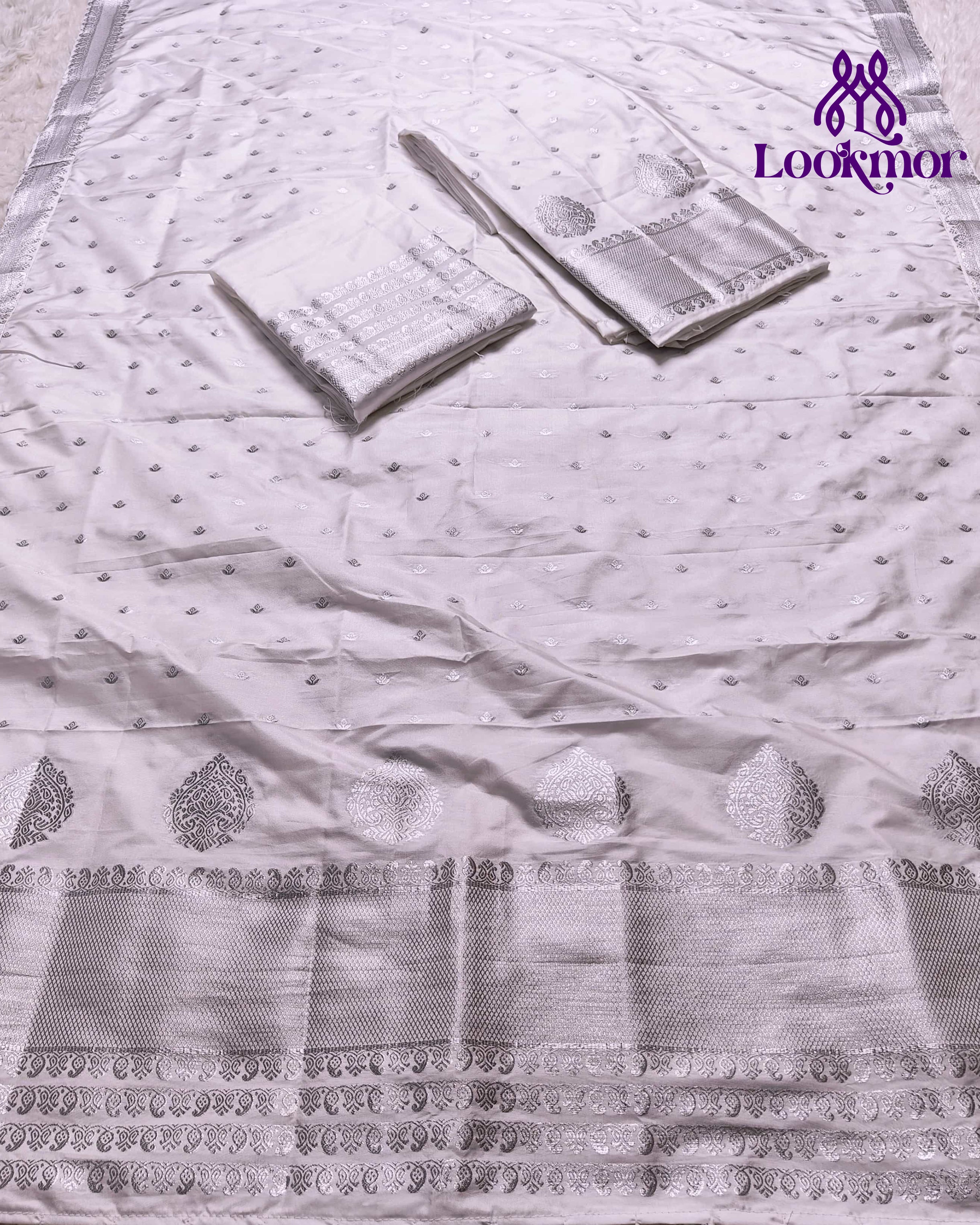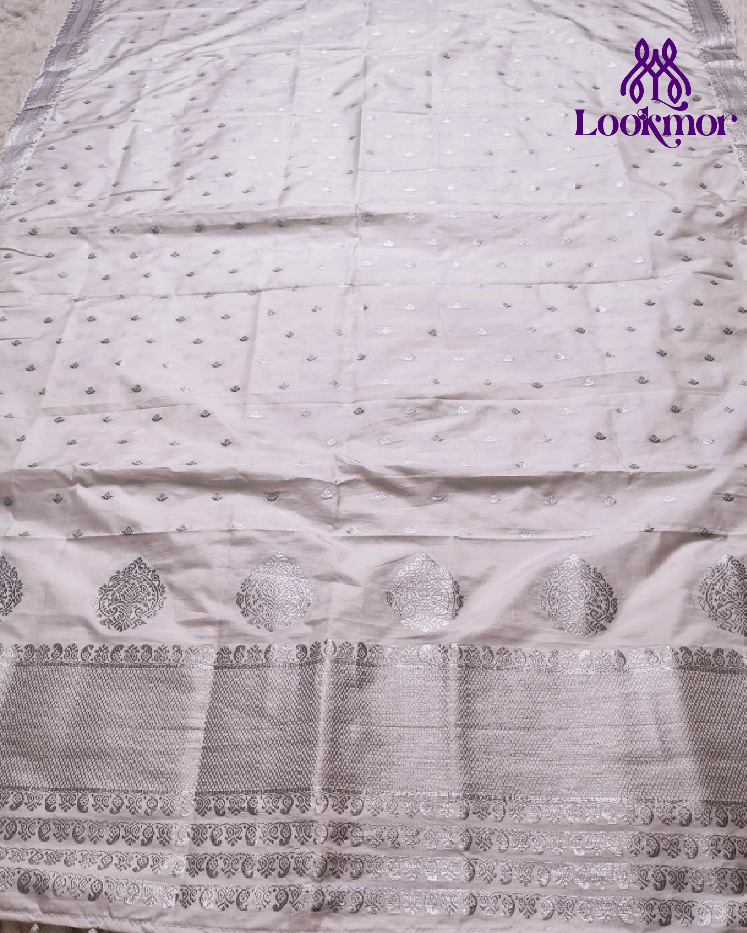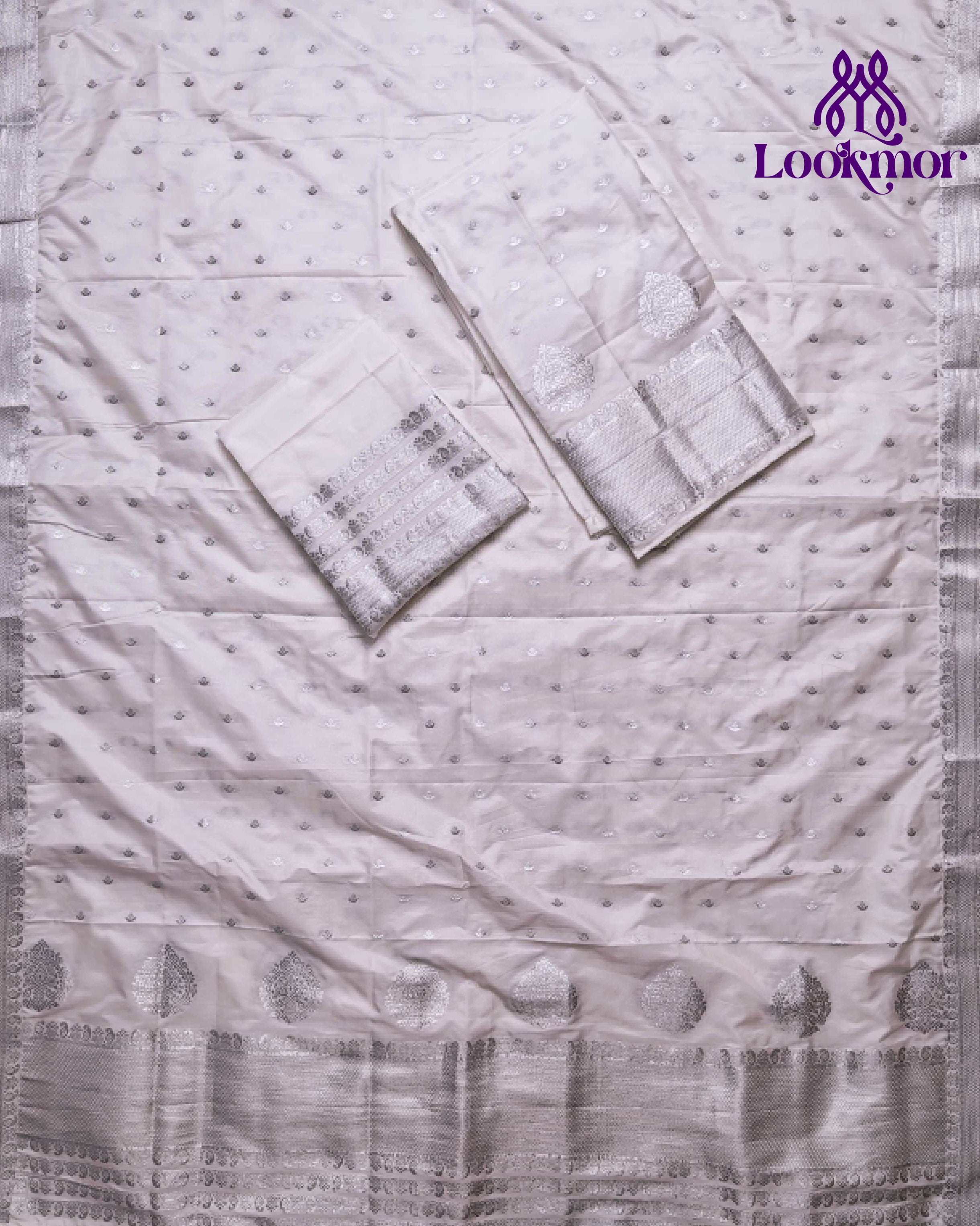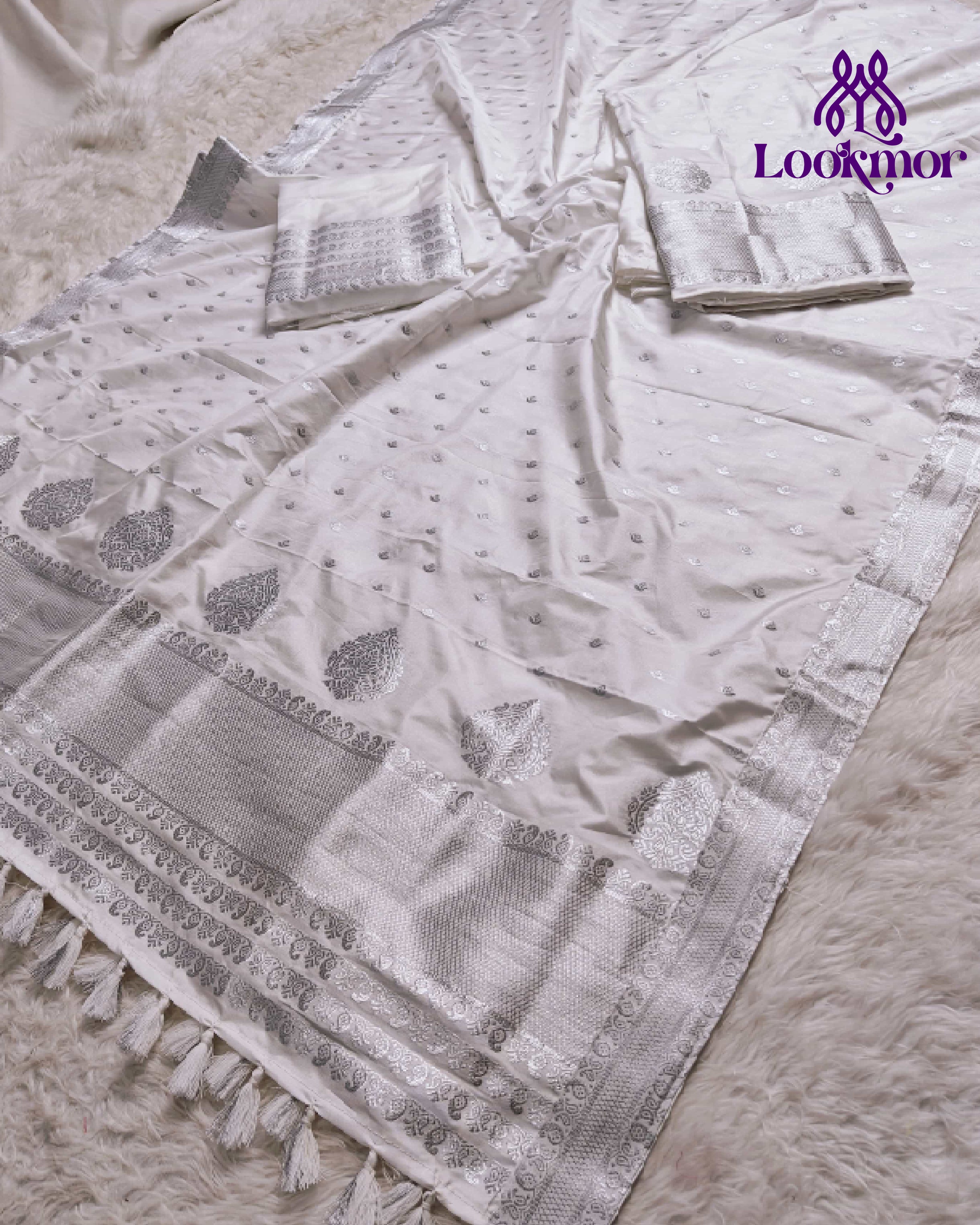 White Super Semi Paat Set Mekhela Sador